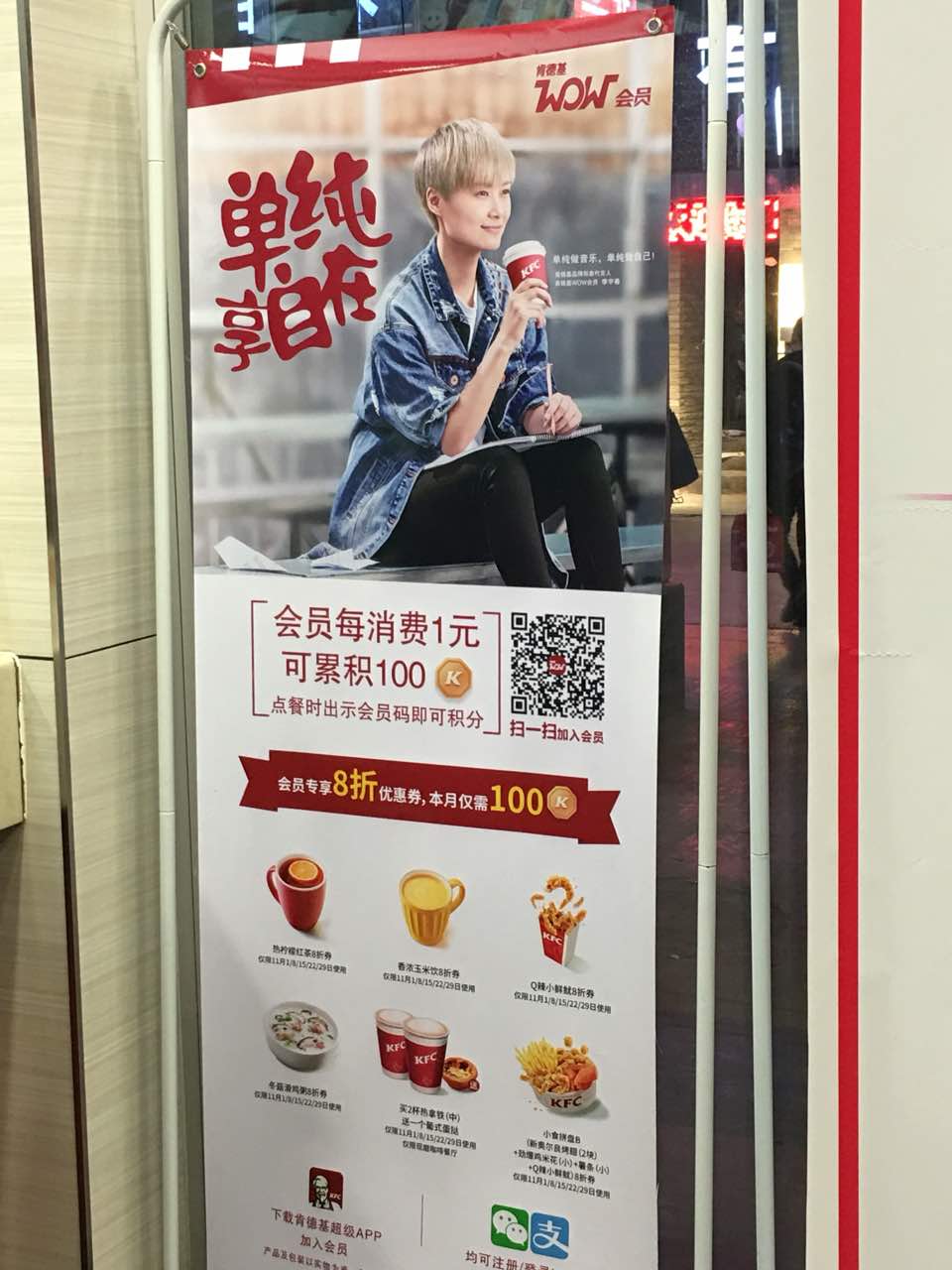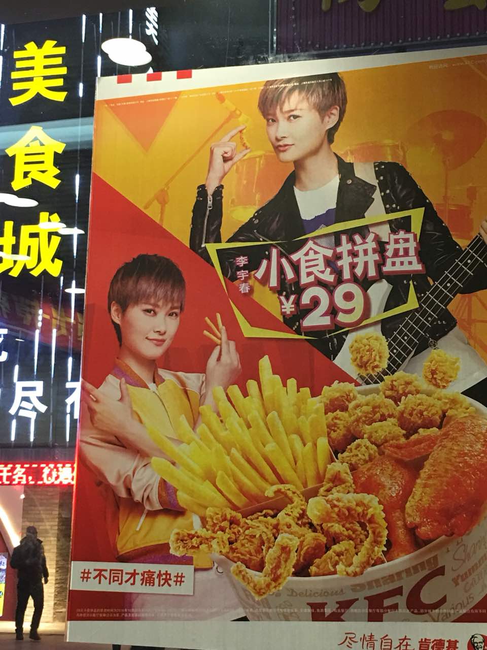 亚欧的肯德基最棒了,有好多我们李宇春的广告。