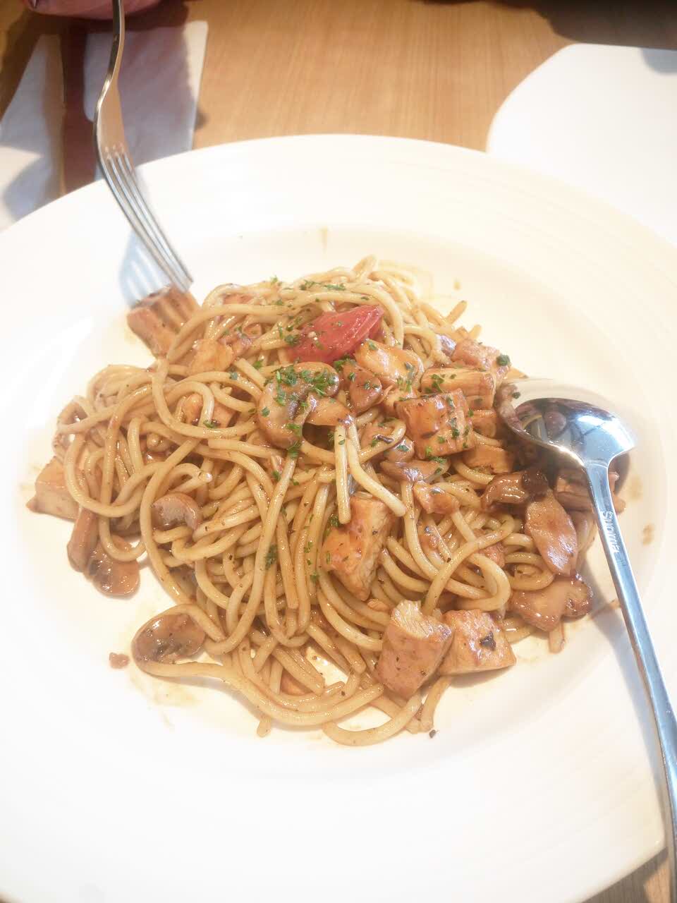 还行呢 点餐的姑娘很温柔可爱 黑椒鸡肉意面还不错 比萨也不错呢 出了点小差错不过很及时的解决了