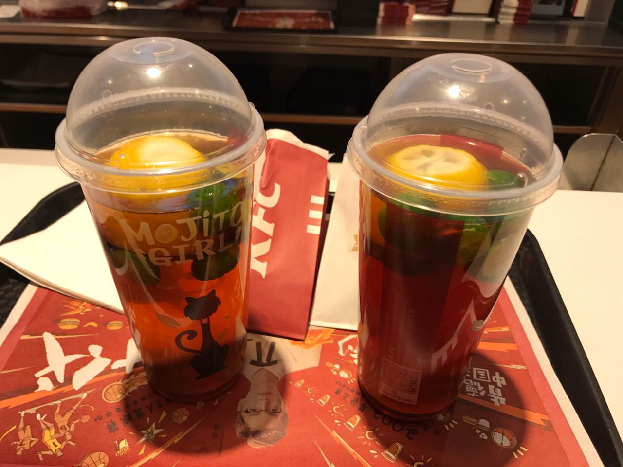 和朋友分享一杯半柠半桔鲜果茶~喜欢肯德基~