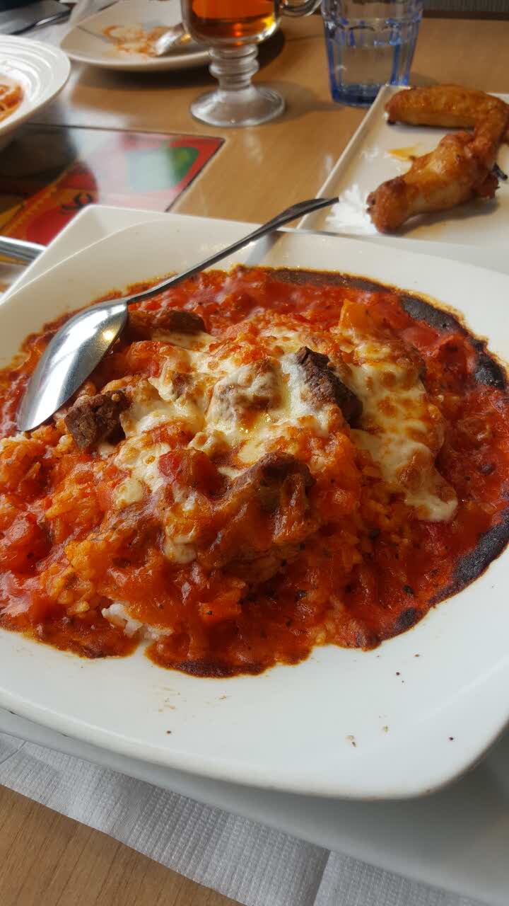 挺好吃的披萨,牛肉焗饭,牛扒。这新装修了,人真的很多,很炒。环境不错,挺好。