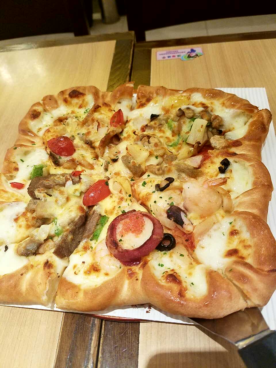 环境有点陈旧了,下午去的人依然不少。披萨一如既往的好吃,服务也不错。