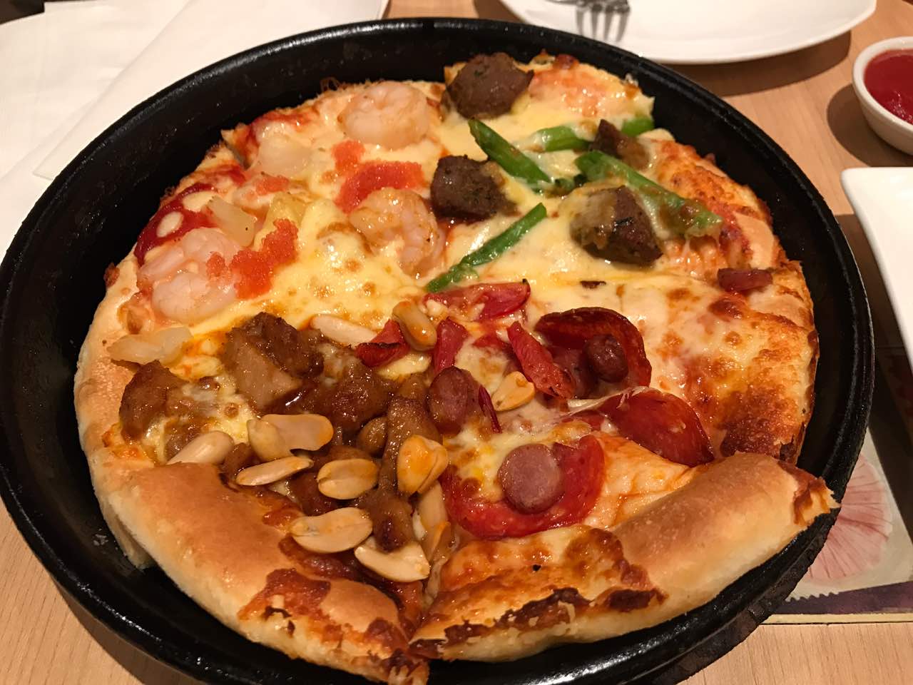 今天的披萨好吃,沙拉摆的太难看了!服务很好的