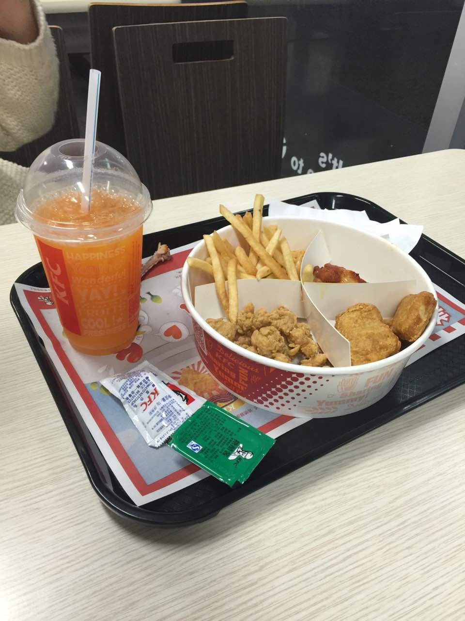 今天陪女儿到奥特莱斯店这边来吃肯德基,女儿点了拼盘不错挺多的,女儿吃的津津有味