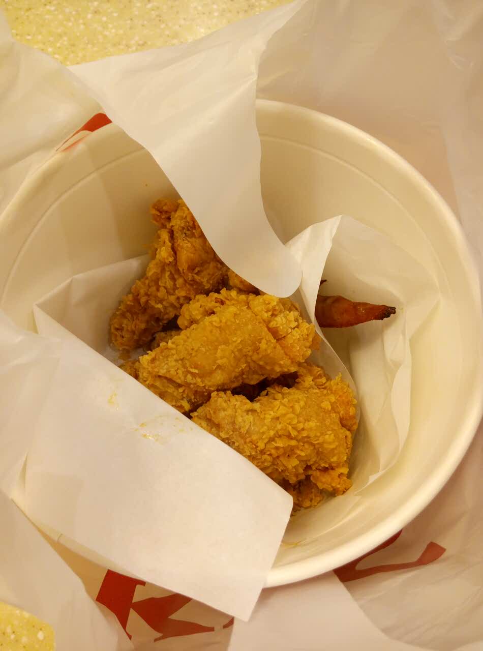 偶尔还是喜欢到kfc吃奥尔良烤翅,派,蛋挞及圣代……这天这翅桶,我钟意哦!