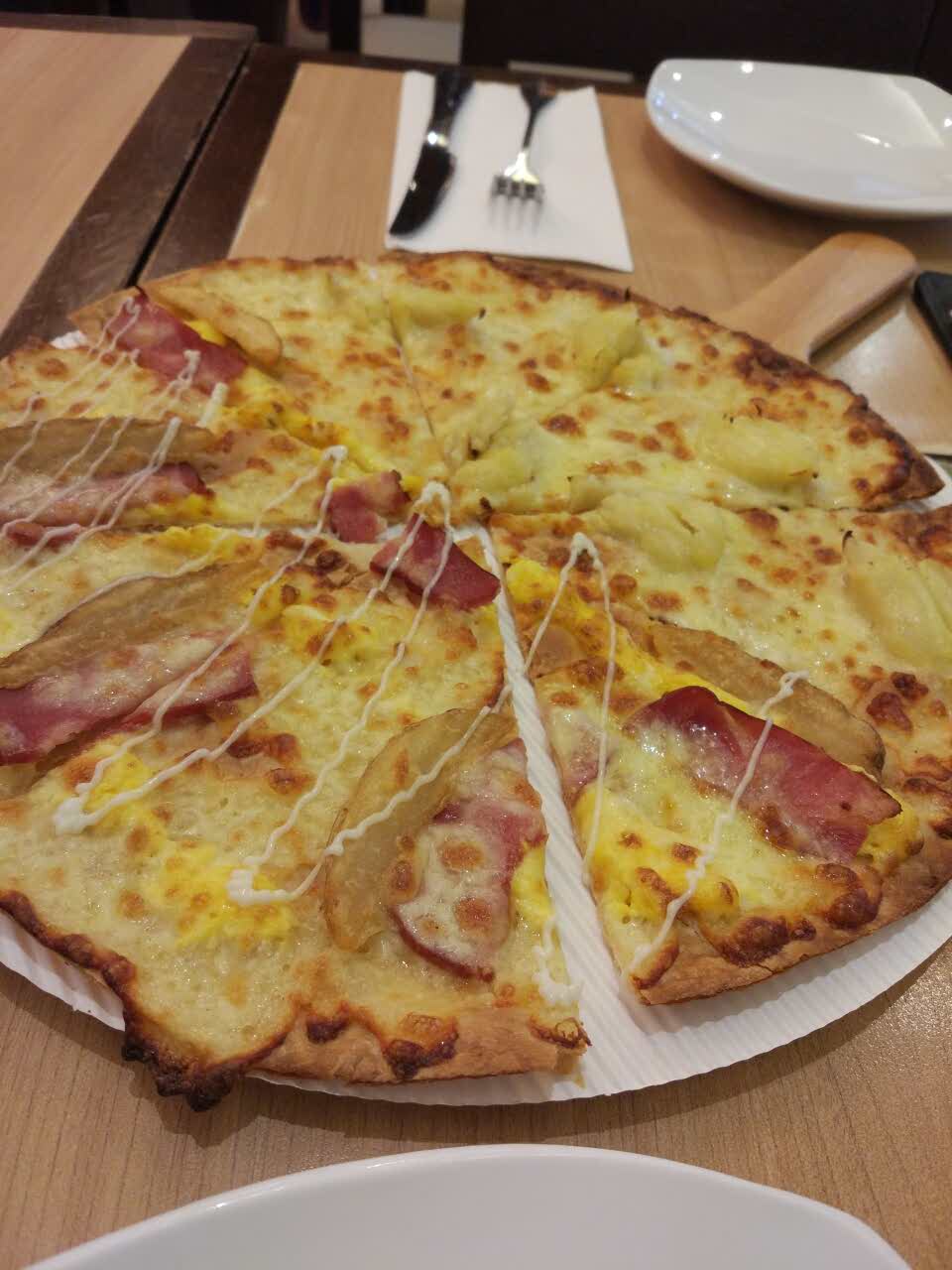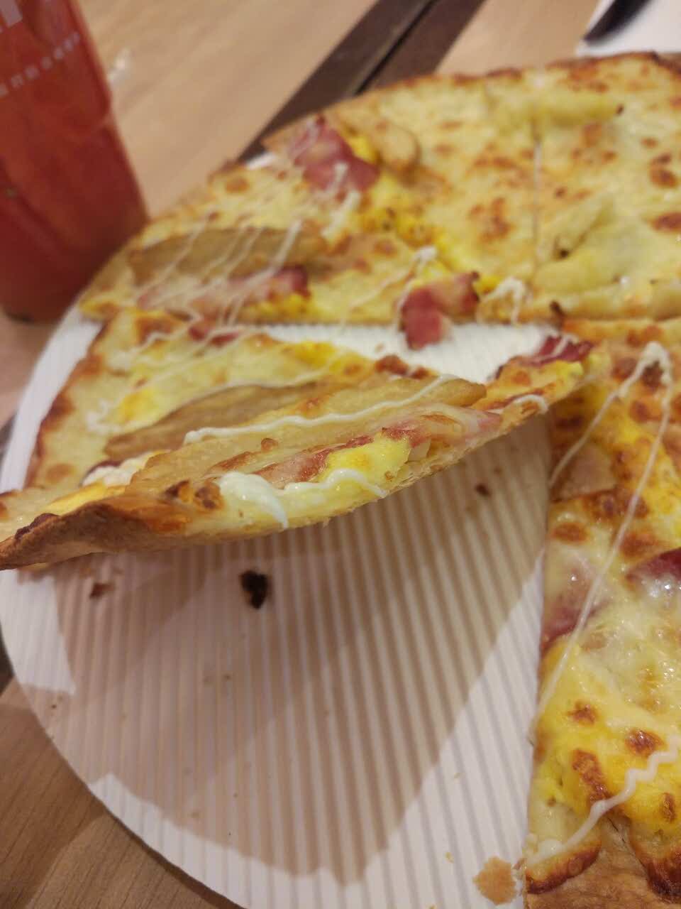 第一次尝试薄脆比萨,够薄够脆,建议薯角和榴莲双拼。