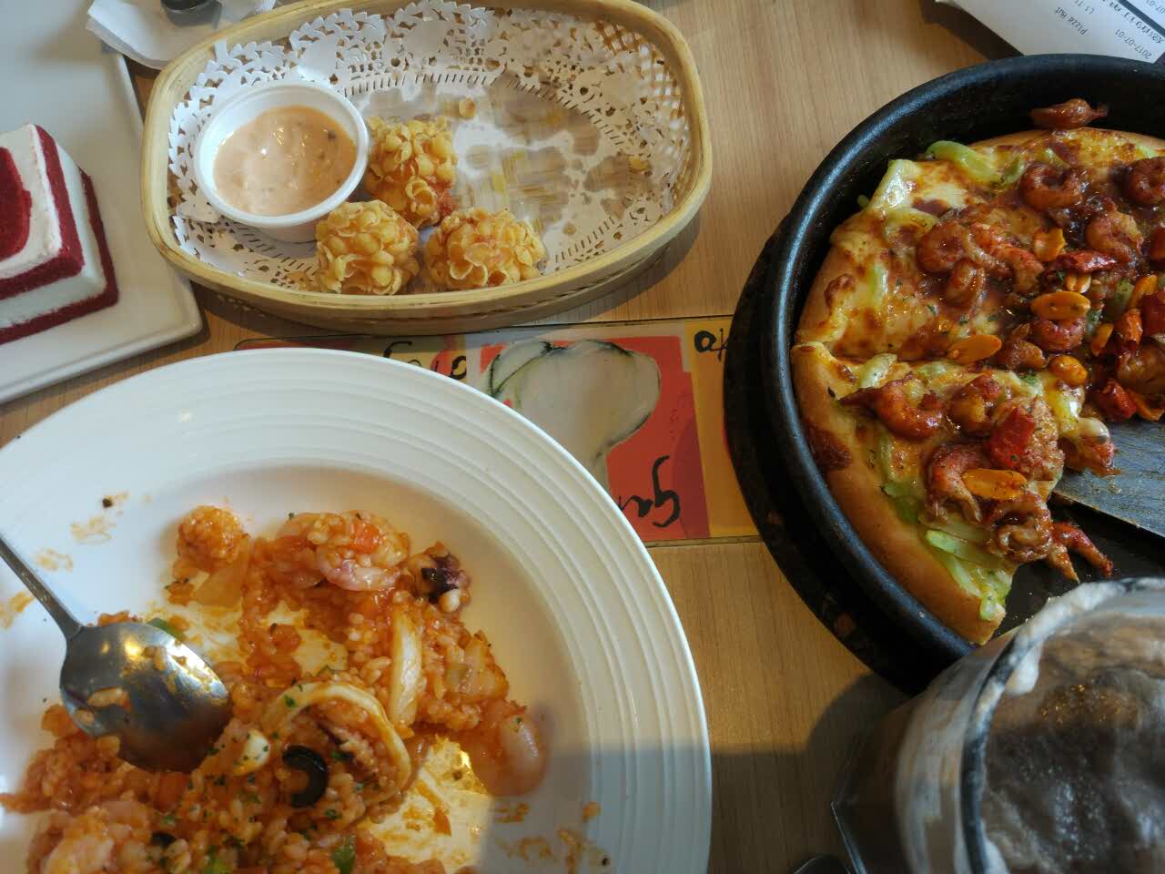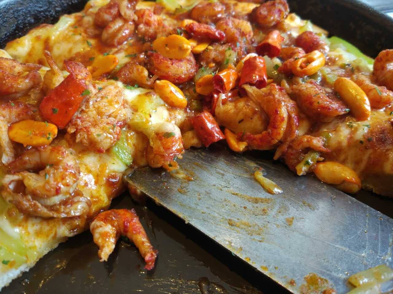 麻辣小龙虾披萨味道很好,很喜欢。推荐鱼子酱虾球,很好吃。