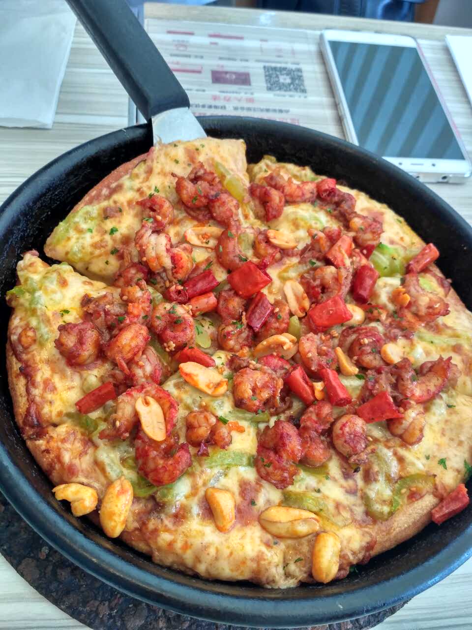 网友2017-07-29很赢得消费者的心新品麻辣小龙虾披萨味道也值得品鉴!首先服务特别周到、细致!沙拉量不太多啊首先服务特别周到、细致!很赢得消费者的心新品麻辣小龙虾披萨味道也值得品鉴!嗨杯好大一份儿,两个人足矣!沙拉量不太多啊