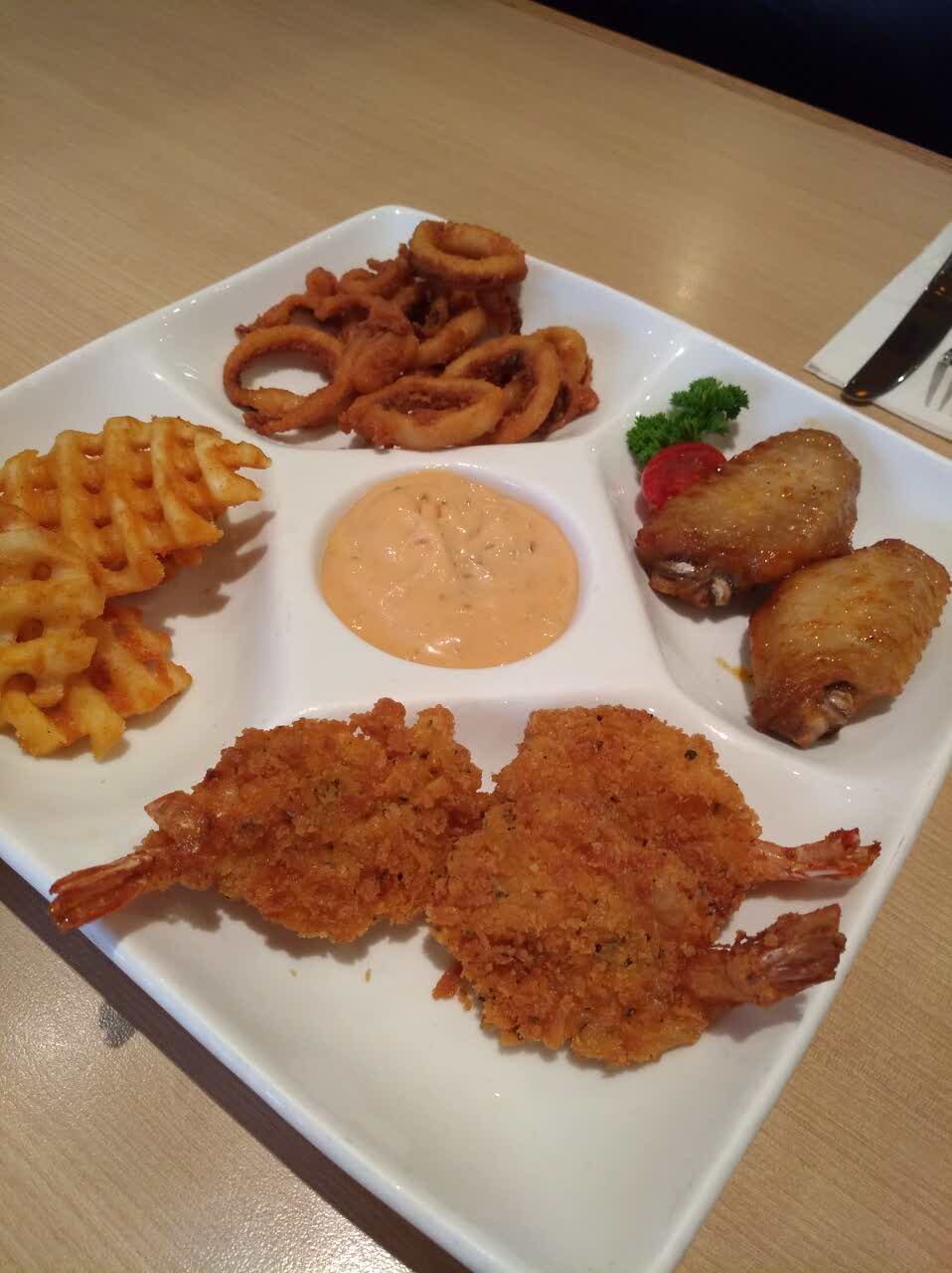 西冷牛排肉质不错,先吃拼盘香脆可口,披萨饼皮酥软馅料丰