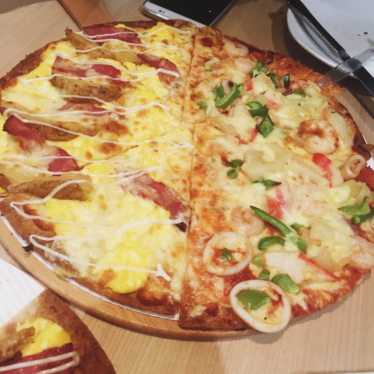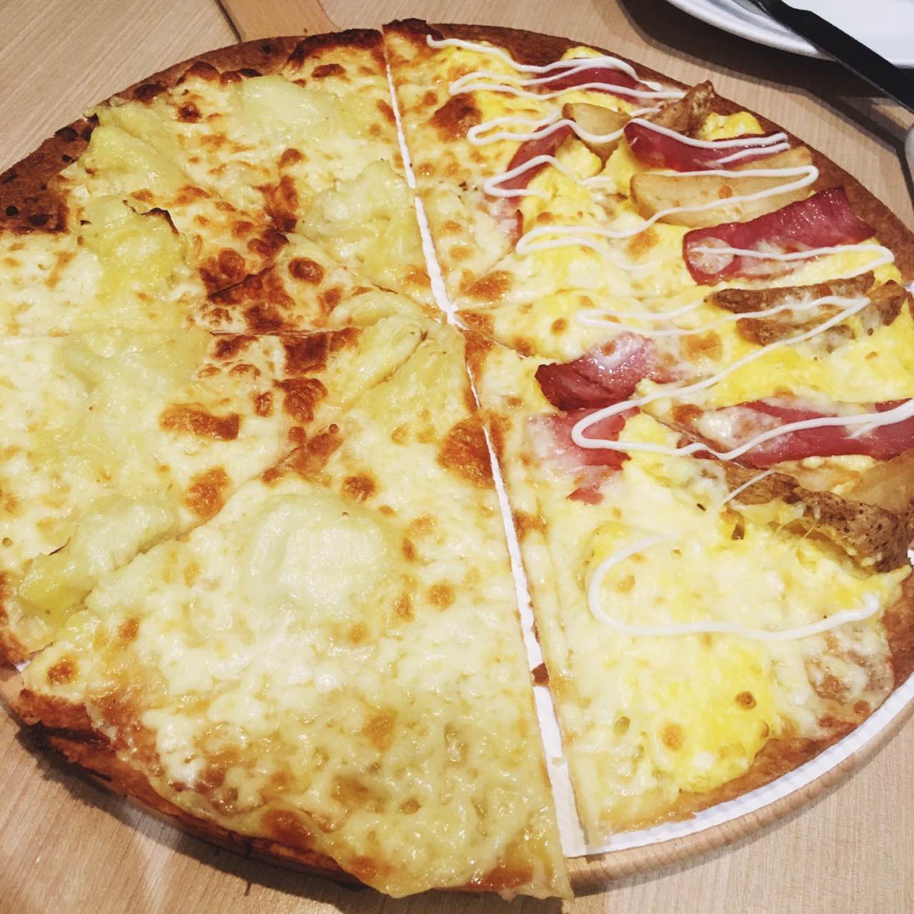 团购的券真是非常实惠。鲜果茶也特别好喝。好。薄披萨比厚披萨好吃。我是这么认为的。