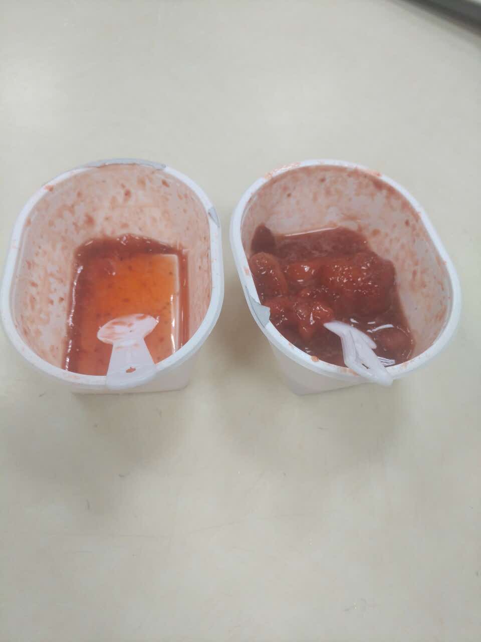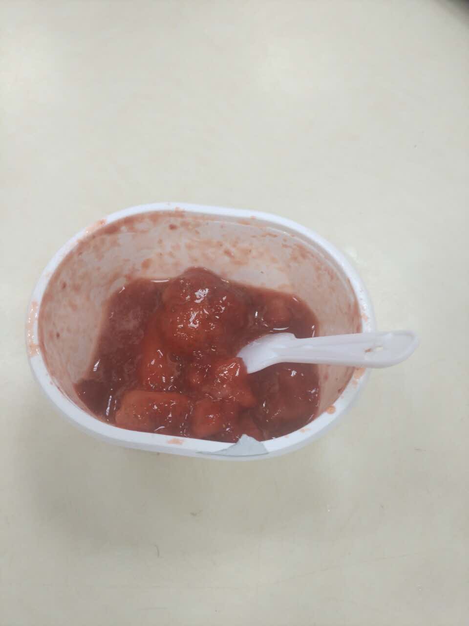 草莓味的冰激凌炒鸡好吃 一口气吃了两个还是不过瘾 我能吃五个 吼吼吼