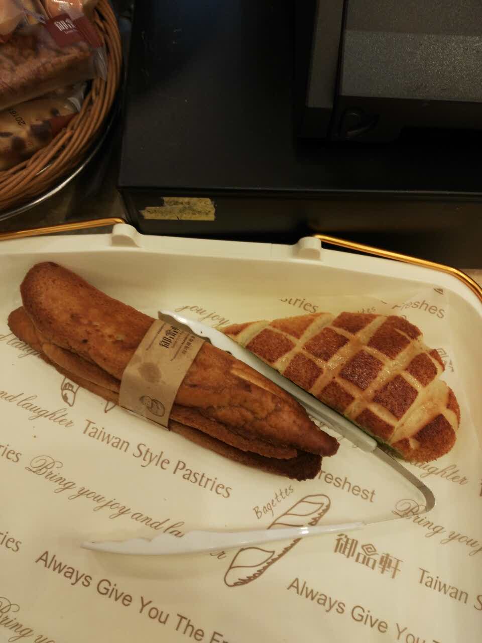 这家是御品轩总店,有现烤面包,这点是我最喜欢的,尤其是刚出炉那种暖烘烘的香喷喷的感觉,买一个当早餐当晚餐都棒棒哒!最喜欢卡士达酱的欧包,可惜吃了一次停产了……还喜欢肉松,烤面包片,尤其是烤面包片,涂上自制草莓酱,幸福感爆棚!