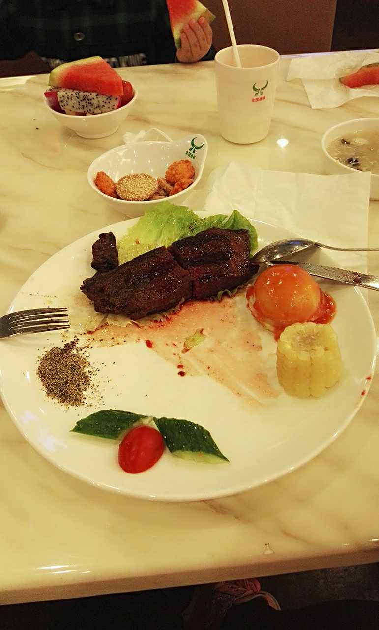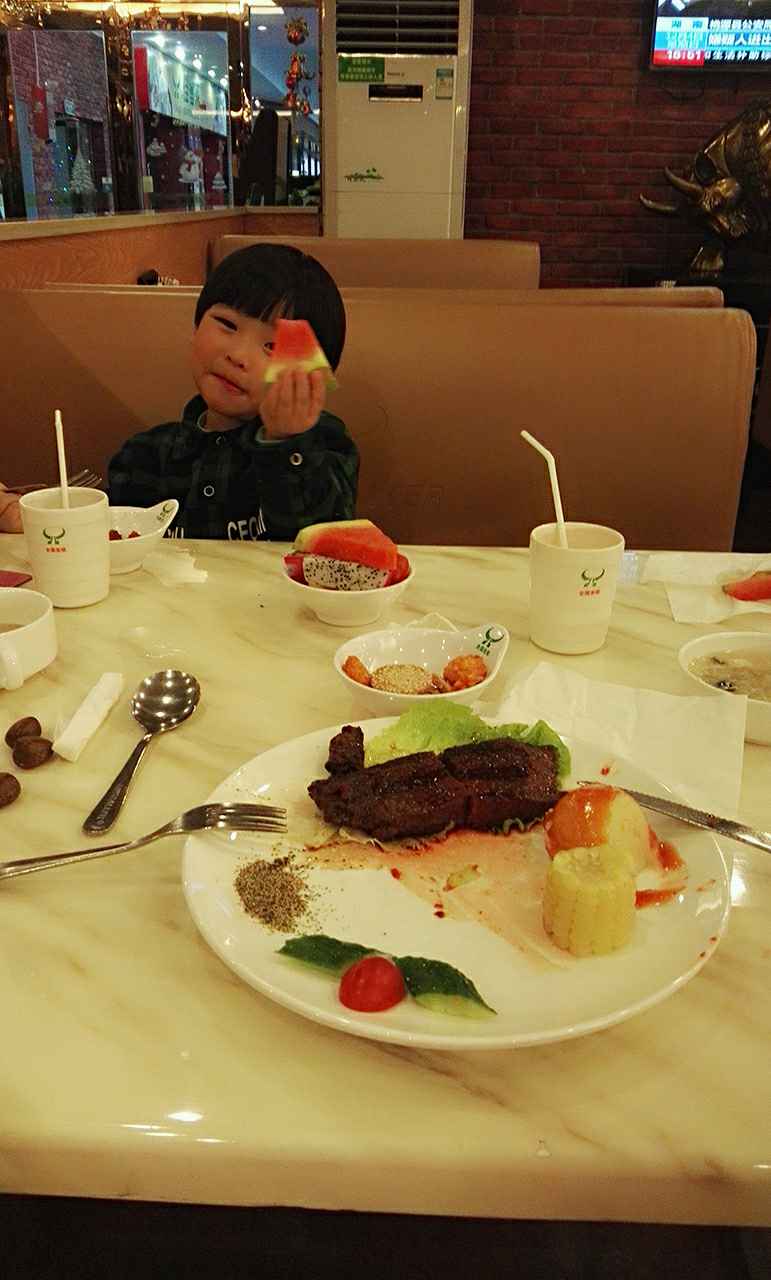 水果多。 果木牛排好吃的比其它牛排好的肉质好。烤的香
