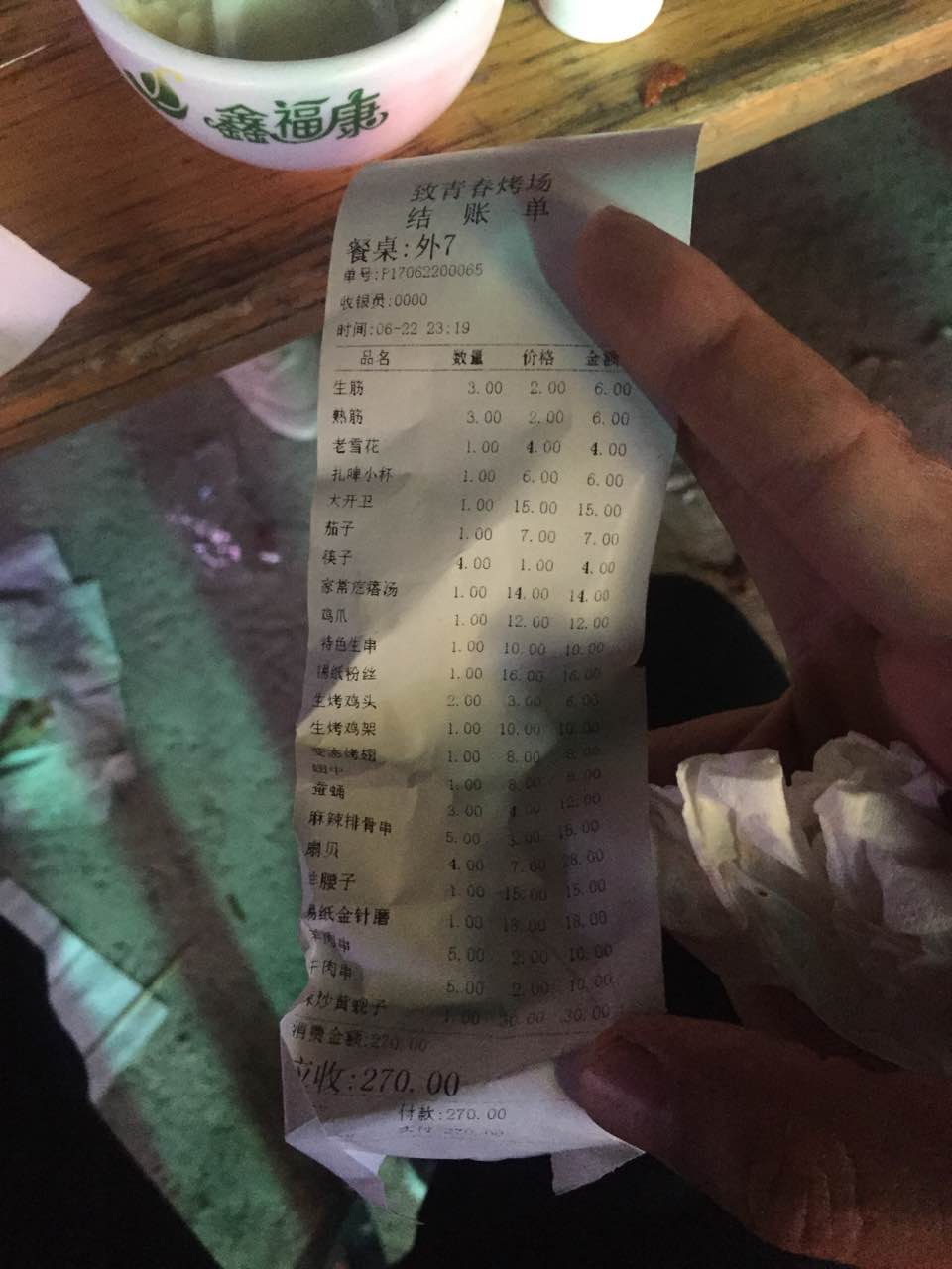味道还行吧!晚上去的,海鲜不是太新鲜!很吵