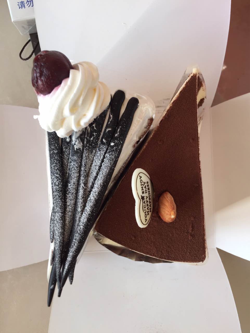 买的黑森林和提拉米苏蛋糕,非常好吃,个人更爱吃提拉米苏的,非常细腻爽口