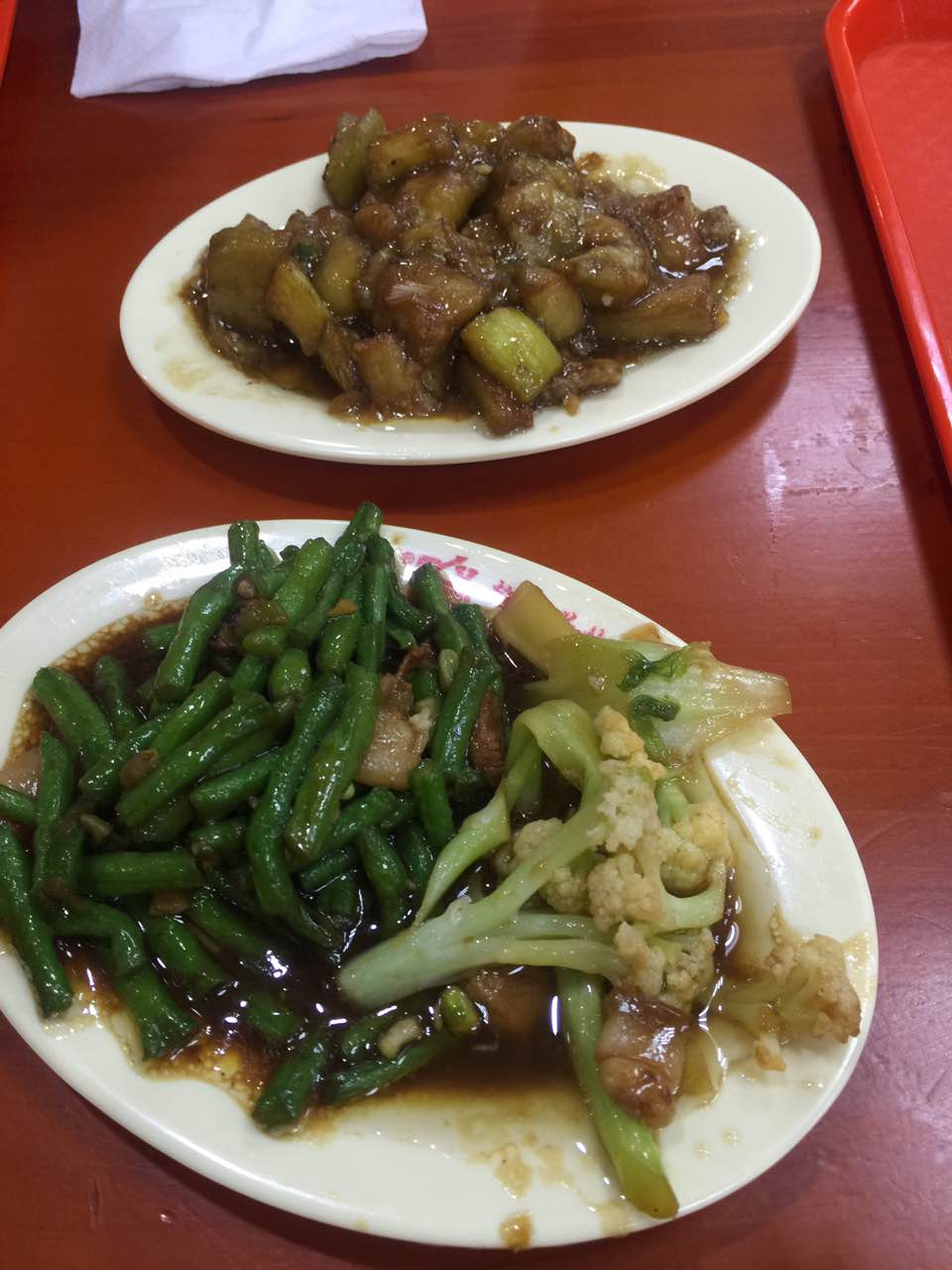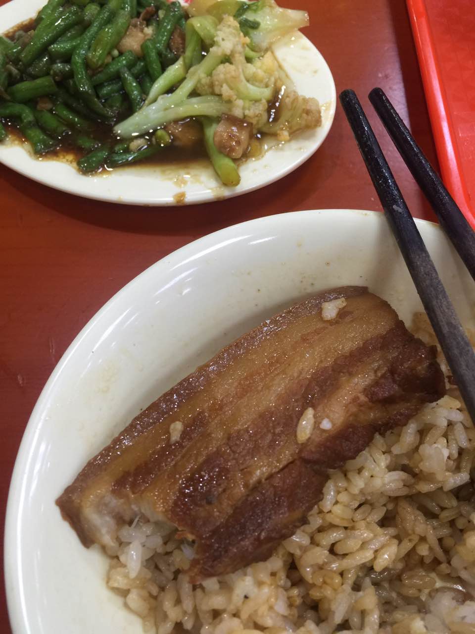 把子肉入口即化,很好吃,菜略微咸点,今天没海带了,海带也很好吃。