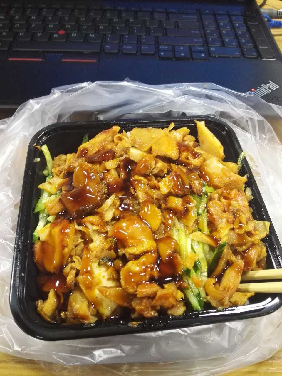 烤肉饭味道不错,蜜汁比较畅销吧,还有饮料送~