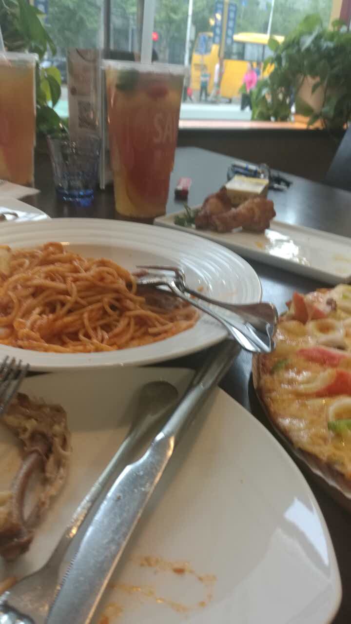 榴莲披萨很香很薄,加了芝士口感更好。抹茶冰淇淋蛋糕味道很正,很满意的一次用餐。服务生很热情。