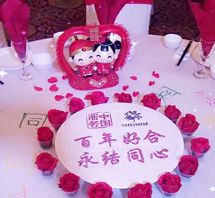 今天在舜和设宴款待亲朋好友,本来是想简简单单找一个大的房间吃个饭,但是一进门的那一刻我愣住了,整个屋子被装饰的特别漂亮,墙上的气球装饰,转盘上的沙包装饰都特别细致漂亮,让我感动的不仅仅是这些装饰,而是让我感受到酒店人员的认真,他们感觉像是在布置自己家人的婚宴一样,每一个地方都是那么的细致入微。*百年好合永结同心*这是舜和酒店天发店给我的祝福。希望他们的这种做法能够保持下去让很多的人感受到惊喜!