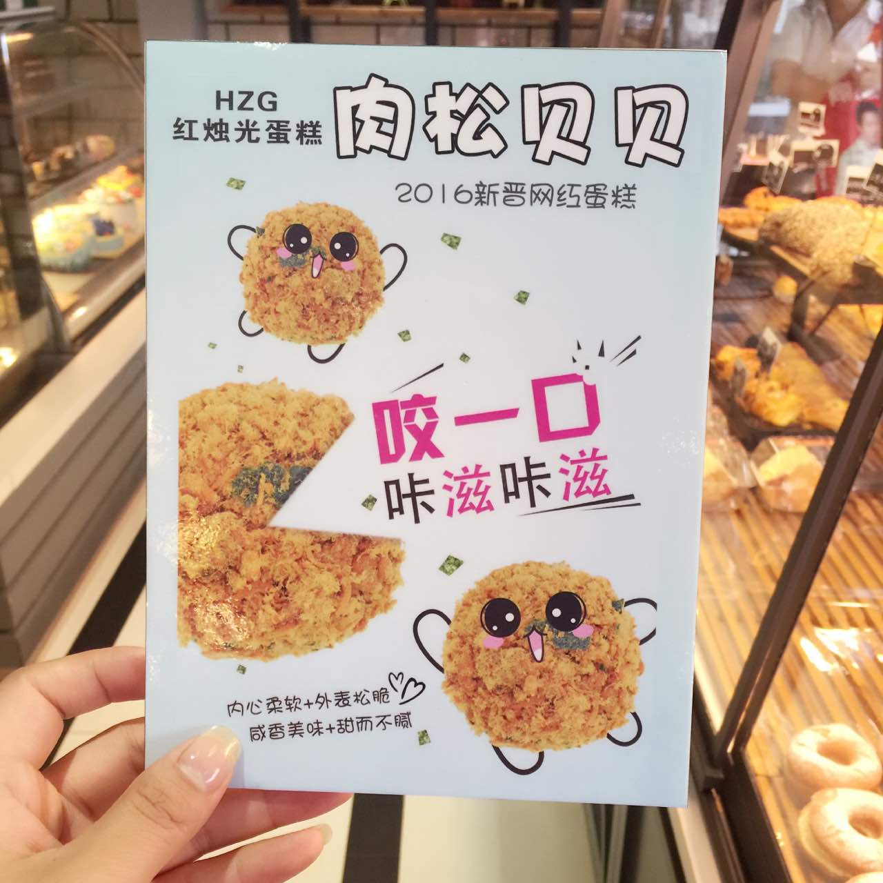 肉松小貝:让味蕾体会外脆内软的感觉,海苔肉松加上贝壳蛋糕,搭配风味沙拉酱的调和,美味营养,每一口都是满满的肉松,好吃到停不下来红烛光呈现在大家面前的每一个蛋糕、面包、都倾注了师傅们百分百的热情和创意,新鲜美味的口感加以清新的时尚元素成就了这每一个蛋糕和麵包的精品!所以在红烛光呈现在大家面前的每一个蛋糕,麵包不仅有曼妙的身型,更拥有芳香的气息,绝佳的口感和一段美妙的故事!