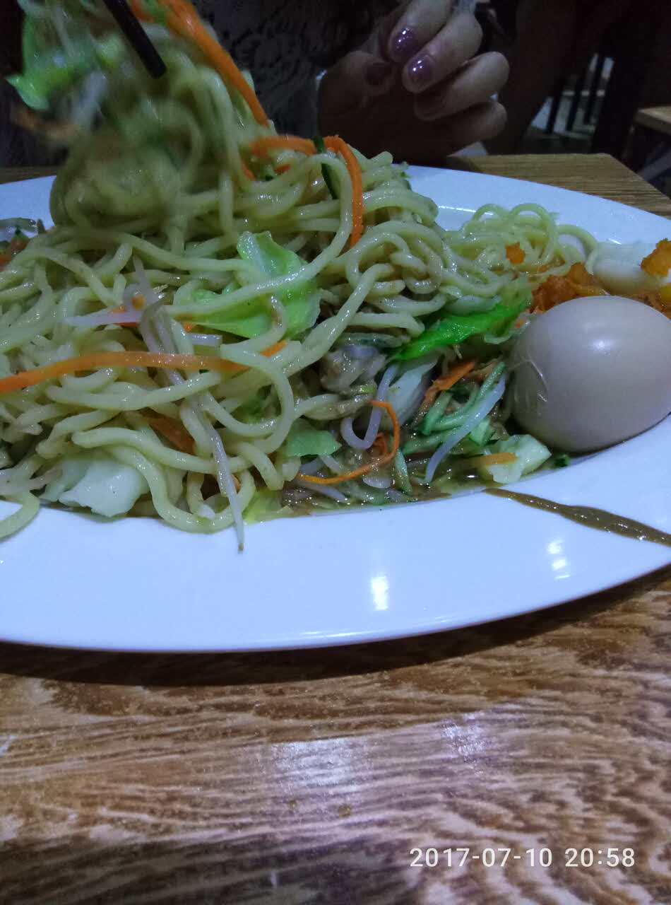 碗很大只啊,盘子也不小。味道还是很好的。