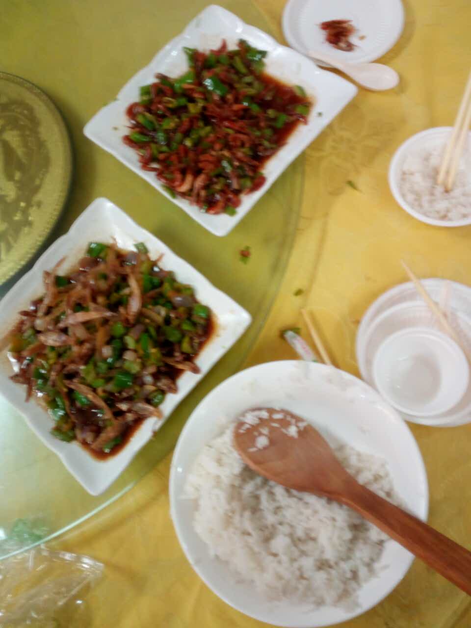 简直不能吃,两份菜,小炒河虾,小炒凤尾鱼还是臭的,但是老板说就是这个味道,,真的不如泡面,,