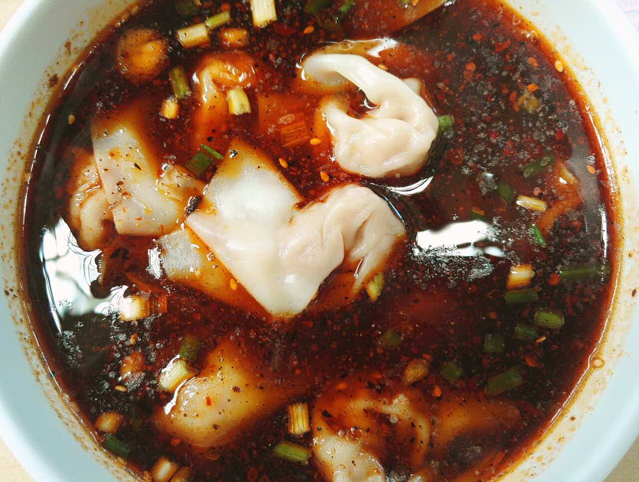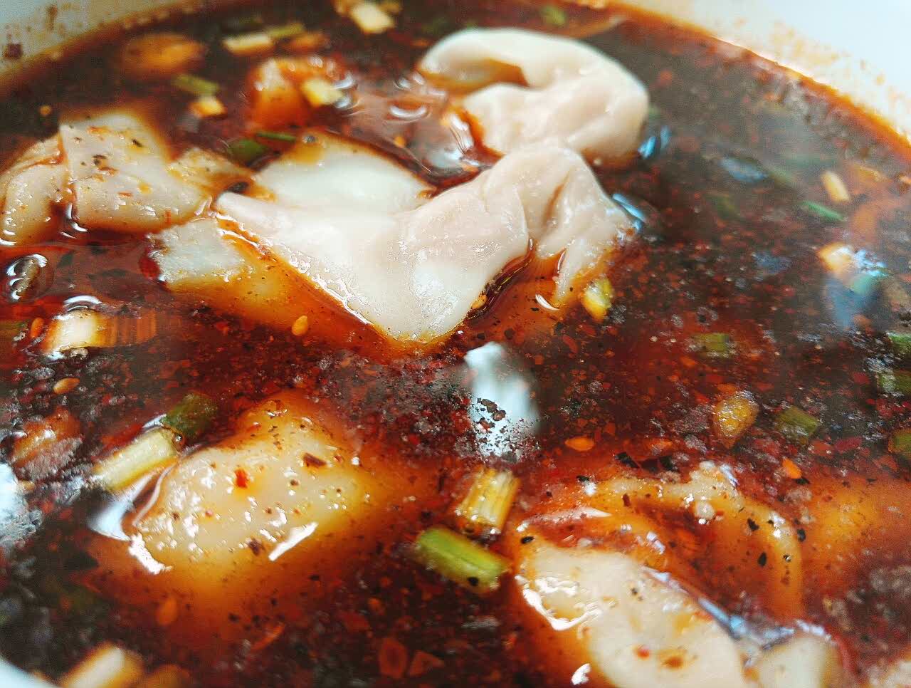 点了红油龙抄手和担担面,味道不错 辣味足,成都机场这家店不错