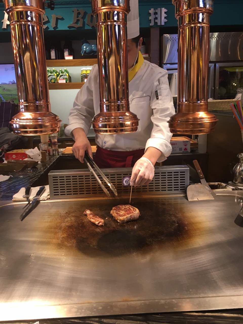 牛排现烤,很好吃,来过好多次了,蔬菜沙拉也是特别好吃,牛肉鲜嫩多汁。