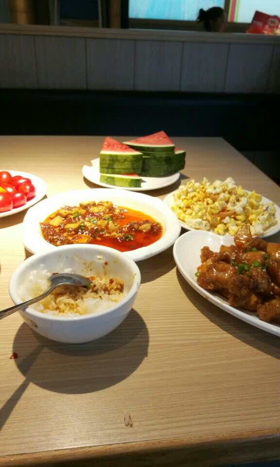 其实点一个菜就好,排骨剩下的我打包了,打包也不用钱,非常好一个人吃的好饱,点了醉排骨和麻婆豆腐,还吃了水果,饱到没朋友了。其实点一个菜就好,排骨剩下的我打包了,打包也不用钱,非常好。现在支付宝还有做活动,口碑那里可以领人气眼红包,可以减5块钱,超实惠的