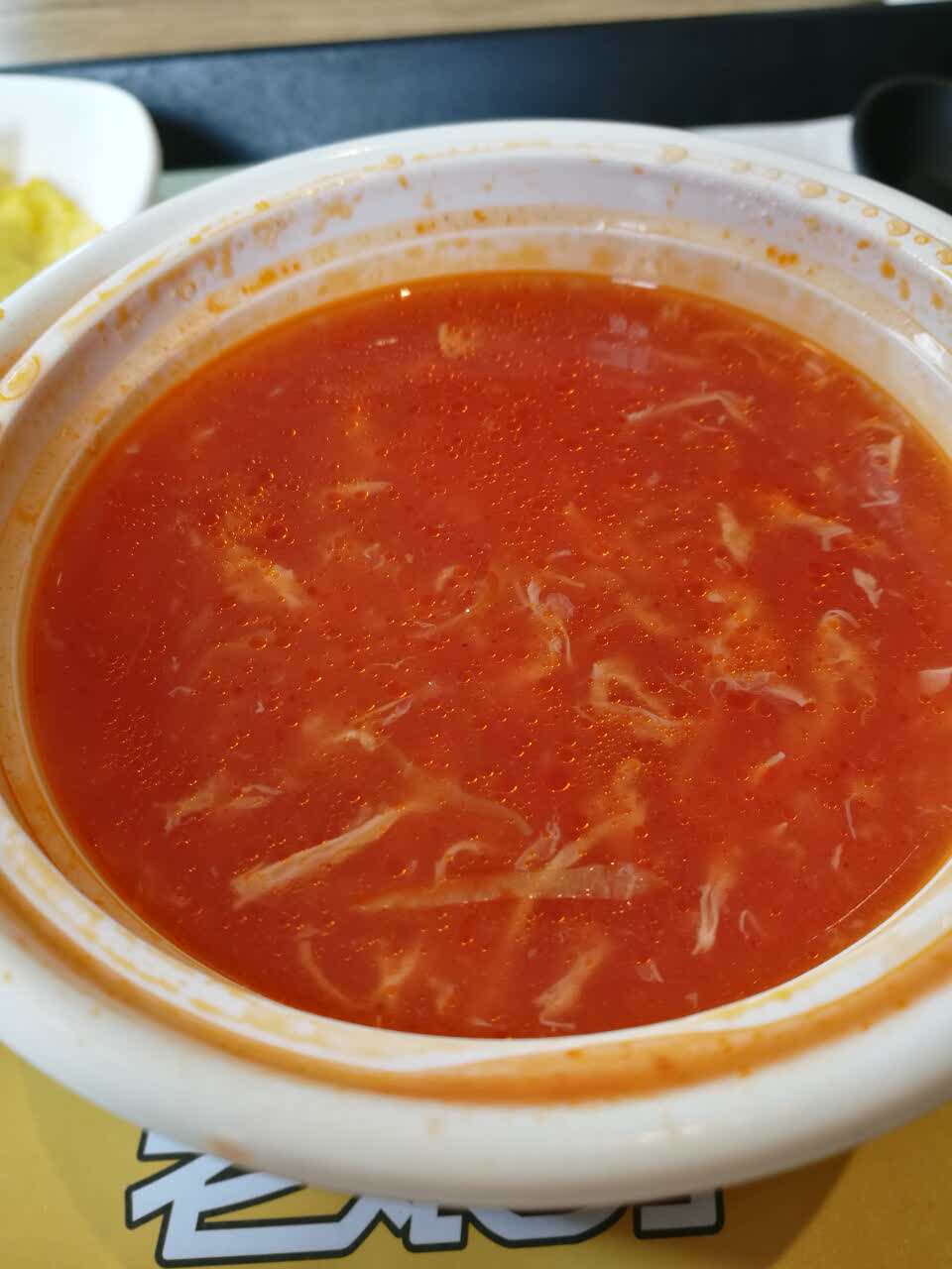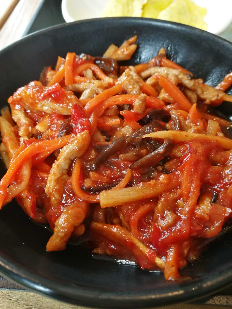 人不多,跟其他的店有所不同。初看很小的店,其实内有乾坤里面还是挺深的。服务员热情,点好餐,没5分钟就上来了。鱼香肉丝套餐,先说说鱼香肉丝吧。就像是老婆饼里没有老婆一样,有肉丝没有鱼,也不知道是不是脑子抽住,忘记这个菜应该是辣的,上来就被惊呆住了,红红的辣,但没有呛人的辣味。夹起一筷子入口,并没有辣到自己,这算是一道改良过的鱼香肉丝吧。不辣,微甜,胡萝卜,笋,地儿,肉丝被很好的融合了,非常下饭哦!蛋饺皮不薄,味道中规中矩。罗宋汤浓稠,里面的食材也不少,天热喝起来,十分开胃的,米饭一如既往的赞,不知不觉中一大碗饭就被消灭了。