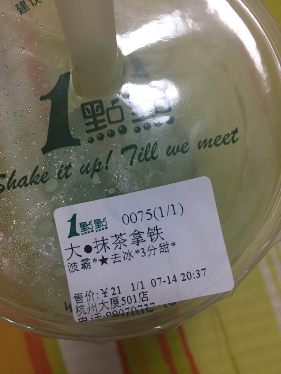 新品波霸抹茶拿铁,波霸甜甜,抹茶微苦,三分甜刚刚好,一如既往的好喝,排好久最终没失望
