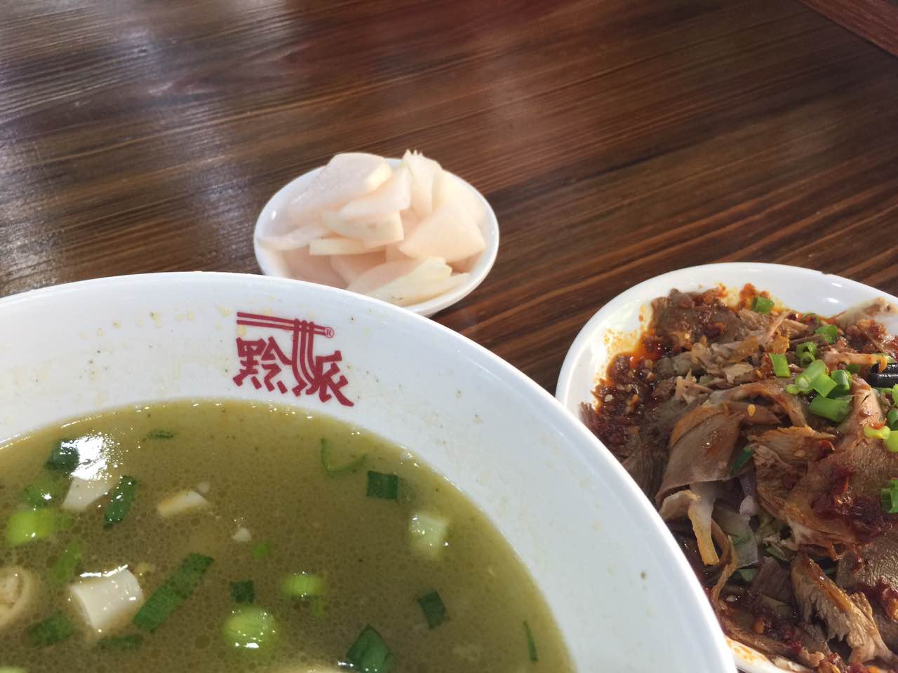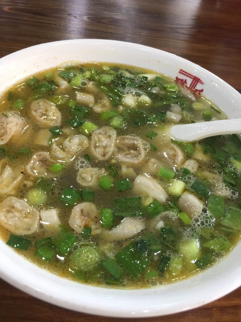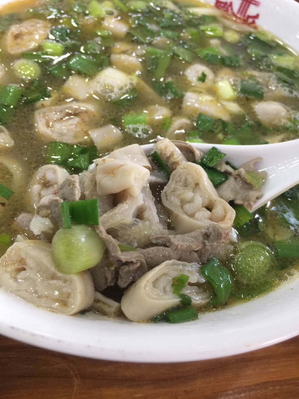装修用暗色木质为主调,烘托招牌上百年老字号……实际,应该是没几年的品牌连锁。羊杂汤料很足,沥干汤水,材料过半,而且进货价格比较高的羊肚儿(碱水漂白过的,奶白色,原色应为棕黄或者深黑),羊杂入口软糯,基本不用多嚼,如留在口腔中细嚼,会️淡淡奶香渗出,充盈口腔。羊肉也是片薄后煮透了的,用力轻抿,就顺着肉质纹理散开了,味也较重(加了味精类增味素,羊肉伴着酱汁入口,明显感觉大脑兴奋,随后口干,很想喝汤水。)辣椒不是很辣,泡菜萝卜刚好,脆鲜粉红,入口多汁且淡淡回甘。