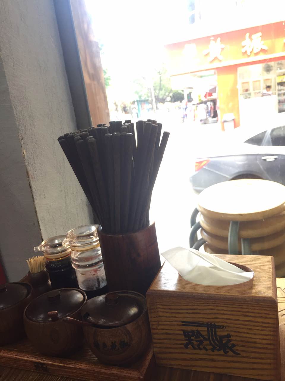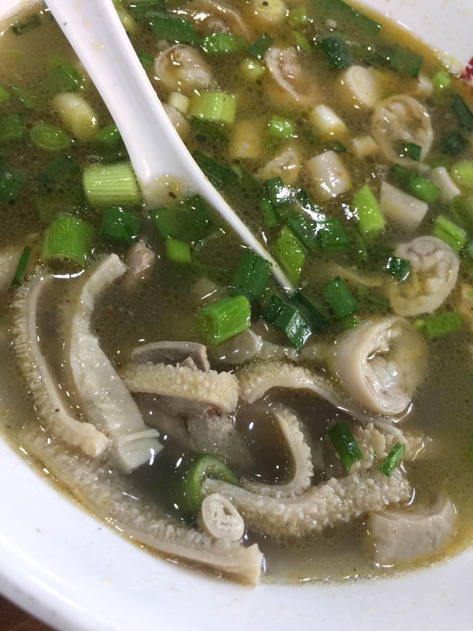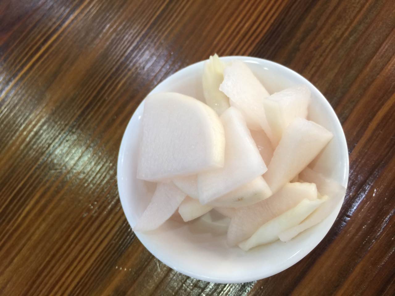 装修用暗色木质为主调,烘托招牌上百年老字号……实际,应该是没几年的品牌连锁。羊杂汤料很足,沥干汤水,材料过半,而且进货价格比较高的羊肚儿(碱水漂白过的,奶白色,原色应为棕黄或者深黑),羊杂入口软糯,基本不用多嚼,如留在口腔中细嚼,会️淡淡奶香渗出,充盈口腔。羊肉也是片薄后煮透了的,用力轻抿,就顺着肉质纹理散开了,味也较重(加了味精类增味素,羊肉伴着酱汁入口,明显感觉大脑兴奋,随后口干,很想喝汤水。)辣椒不是很辣,泡菜萝卜刚好,脆鲜粉红,入口多汁且淡淡回甘。
