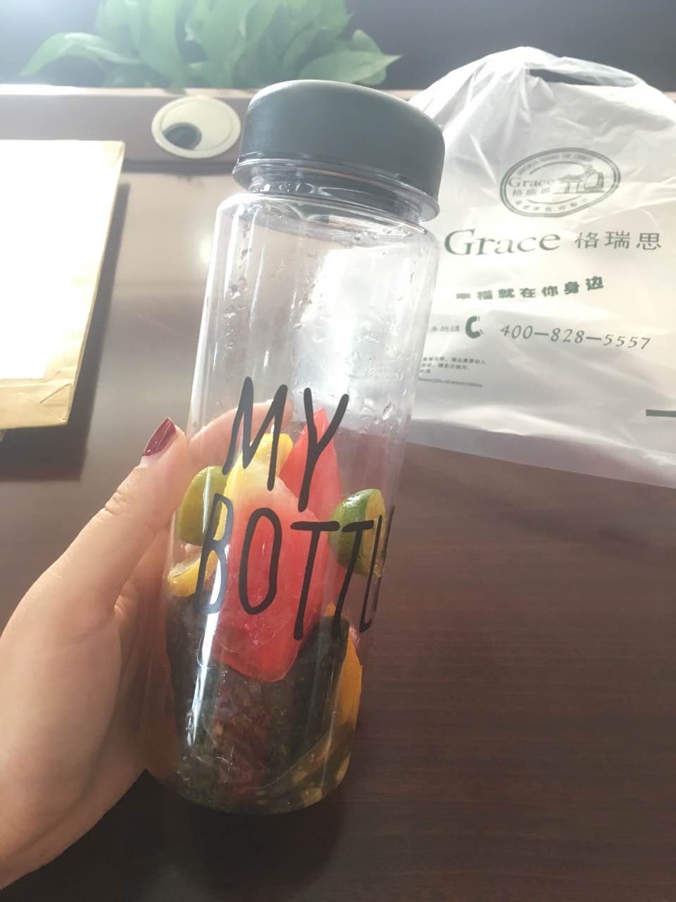 看中水果茶的瓶子~颜值超级高!打开一看也很贴心,不用担心呛到~关键是水果茶还很好喝!