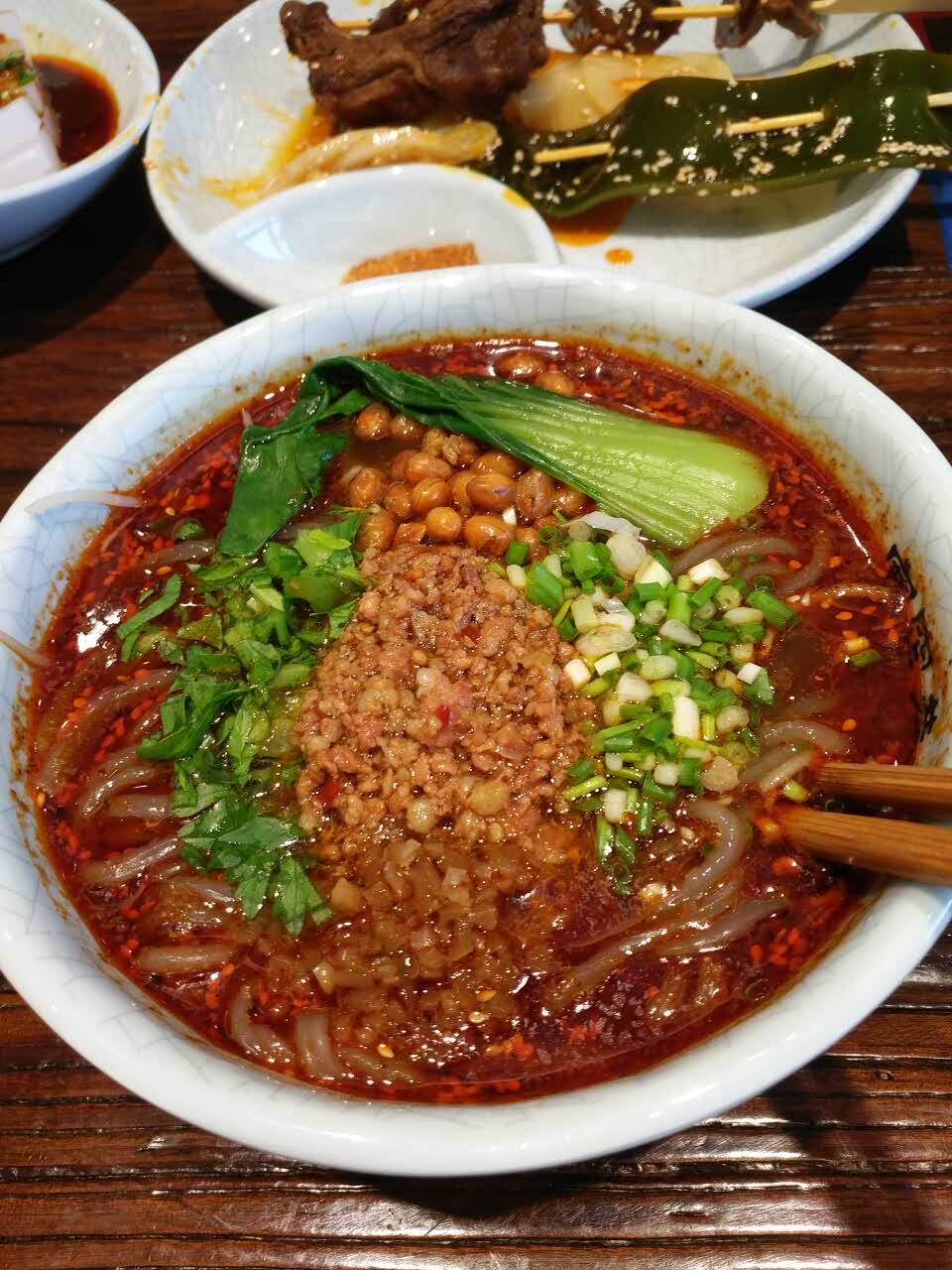 凉粉不好吃,红油水饺是半生的(忘了拍图),其他还可以,串串比较辣,吃不了辣的人就不要点了两个人实在不知道吃啥的时候去吃还可以!凉粉不好吃,红油水饺是半生的(忘了拍图),其他还可以,串串比较辣,吃不了辣的人就不要点了
