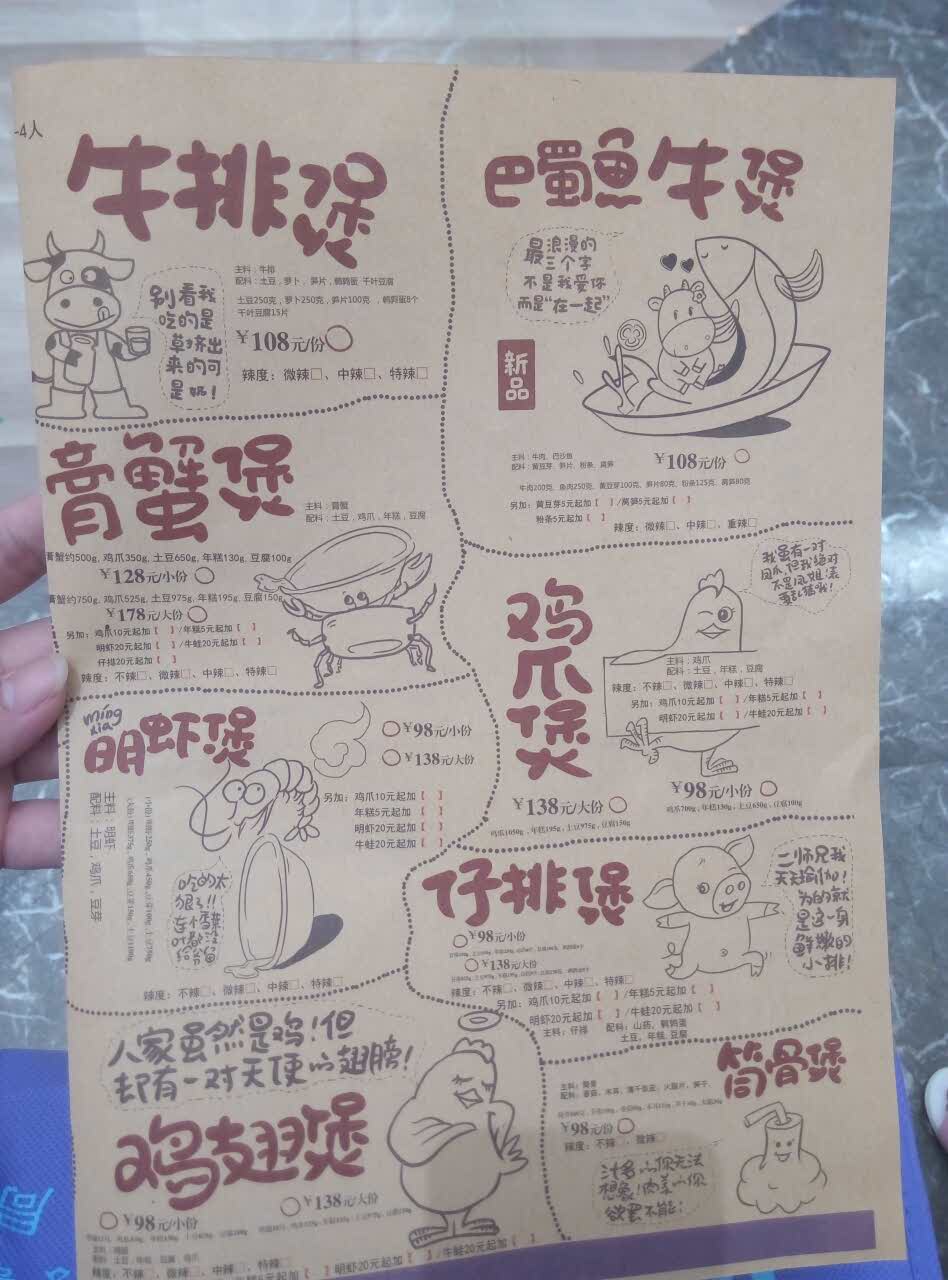 味道不错,新店开张半价很优惠,点就两个煲,肉蟹煲和明虾煲