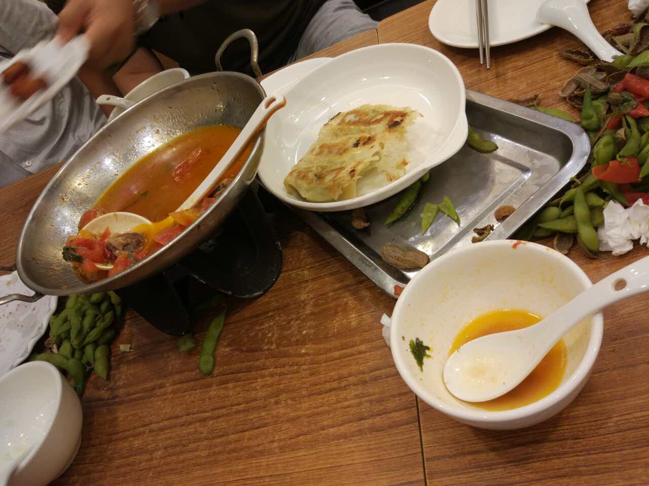 菜量一般 西红柿炖牛肉味道不错 锅贴不错 炸鲜奶不错