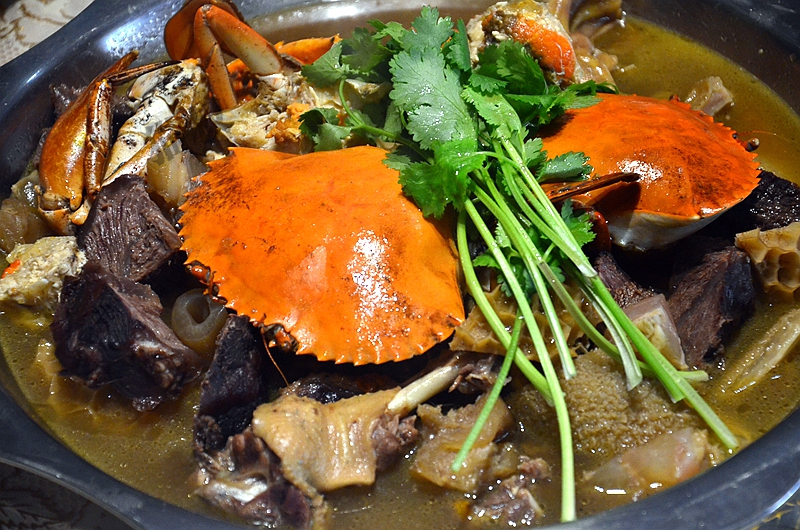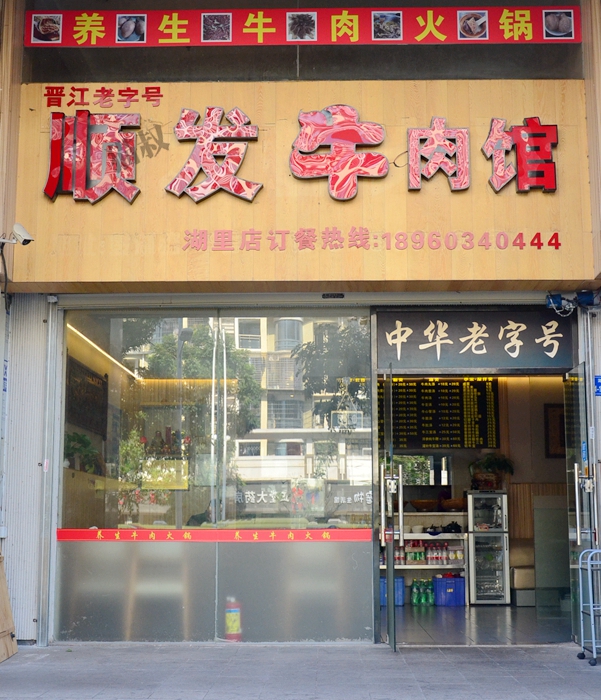 顺发牛肉馆金湖店位于厦门金湖路,联通大厦车站旁,是家泉州风味的牛肉馆,泉州牛肉有数百年的历史,自成一派,闻名遐迩,顺发牛肉馆有牛肉火锅、牛肉冷热菜、牛肉面粉套餐等,不论是聚餐大快朵颐,还是简单吃个便饭,都能吃的满意尽兴。 店内有两层,面积虽不大,但座位布局宽敞,用餐舒适,整洁明亮,素雅大方,气氛温馨亲切。 先品尝凉菜,凉拌黄瓜清新爽口,凉拌木耳清脆开胃。 牛肉的菜色更是不可错过,拌牛肚大片厚实柔韧有嚼劲,拌牛舌筋道脆爽,牛胸朥肥而不腻,牛腩连筋带肉细嫩入味。 期待中的番鸭膏蟹牛三宝锅终于上桌了,可以选择加牛三宝也可以选择加牛鞭,我们选择的是牛三宝。满满一大锅热气腾腾,让人食指大动,迫不及待先喝碗汤,浓香醇厚,有番鸭的甜、牛肉的香、膏蟹的鲜,滋味丰富回味无穷,一碗下肚浑身舒畅。锅中有切块的整只番鸭,选用优质红番鸭,这种鸭跟普通鸭不同,特别具有滋补功效,鸭肉紧实而不拆,娇嫩而不肥,令人爱不释手。膏蟹是硕大的两只,都是当天送货,生猛鲜活,蟹膏丰富香浓,蟹肉饱满鲜美,肉肉中加入膏蟹,堪称点睛之笔。牛三宝是牛肚、牛筋、牛腩,份量十足真材实料,吃肉喝汤,不亦说乎。8、9个吃货大吃大喝竟然都没吃完这一锅,可见有多实在,而且一份才680,物超所值,聚餐来上一锅,面子里子都有了。因为有的食材需要现进货,有的食材需要长时间烹制,所以要吃这一锅,记得提前预定哦! 吃完锅中食材,还可以用滋补高汤涮火锅,荤素涮菜齐全,吃的尽兴。 喜欢吃主食的话可以来份咸饭,配料丰富,烹制的均匀入味。 吃饱喝足,扶墙而出,只感觉浑身暖洋洋,手脚热乎乎,冬天多冷都不怕啦!