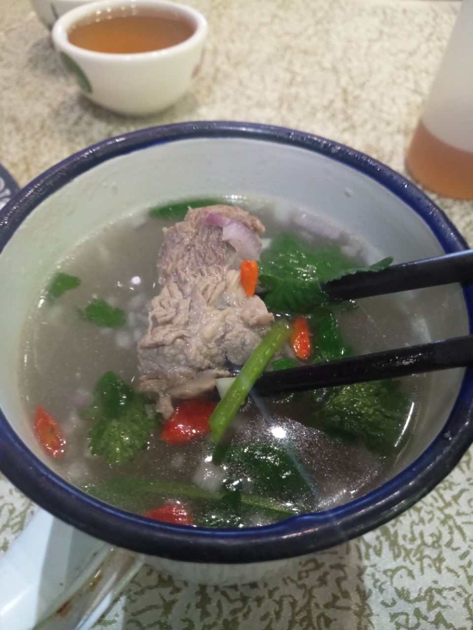 【环境】在传媒大学西街上,周围的门店很多都拆了,【巴依老爷】的牌子和门面还是很大的。里面装修挺好,比较宽敞,有三层楼。 【菜品】【手抓饭】新疆口味地道,葡萄干什么的和米饭融合的口味很好。【缸缸汤】一小搪瓷缸里一份汤,里面有两三块羊肉,肉块挺大,还有一些胡萝卜的片,汤水味道很好。【凉皮】不好,太面,没有弹性。【炒三蔬】一般,有点糊味。 【服务】还行吧。上菜比较快,他家充值折扣还是很合适的。