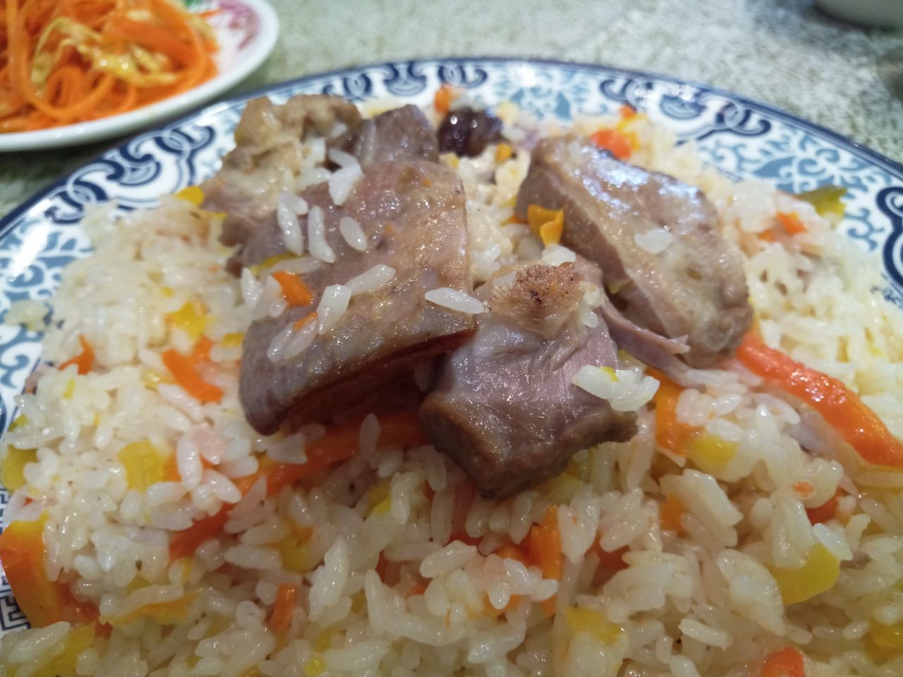 【菜品】【手抓饭】新疆口味地道,葡萄干什么的和米饭融合的口味很好。【凉皮】不好,太面,没有弹性