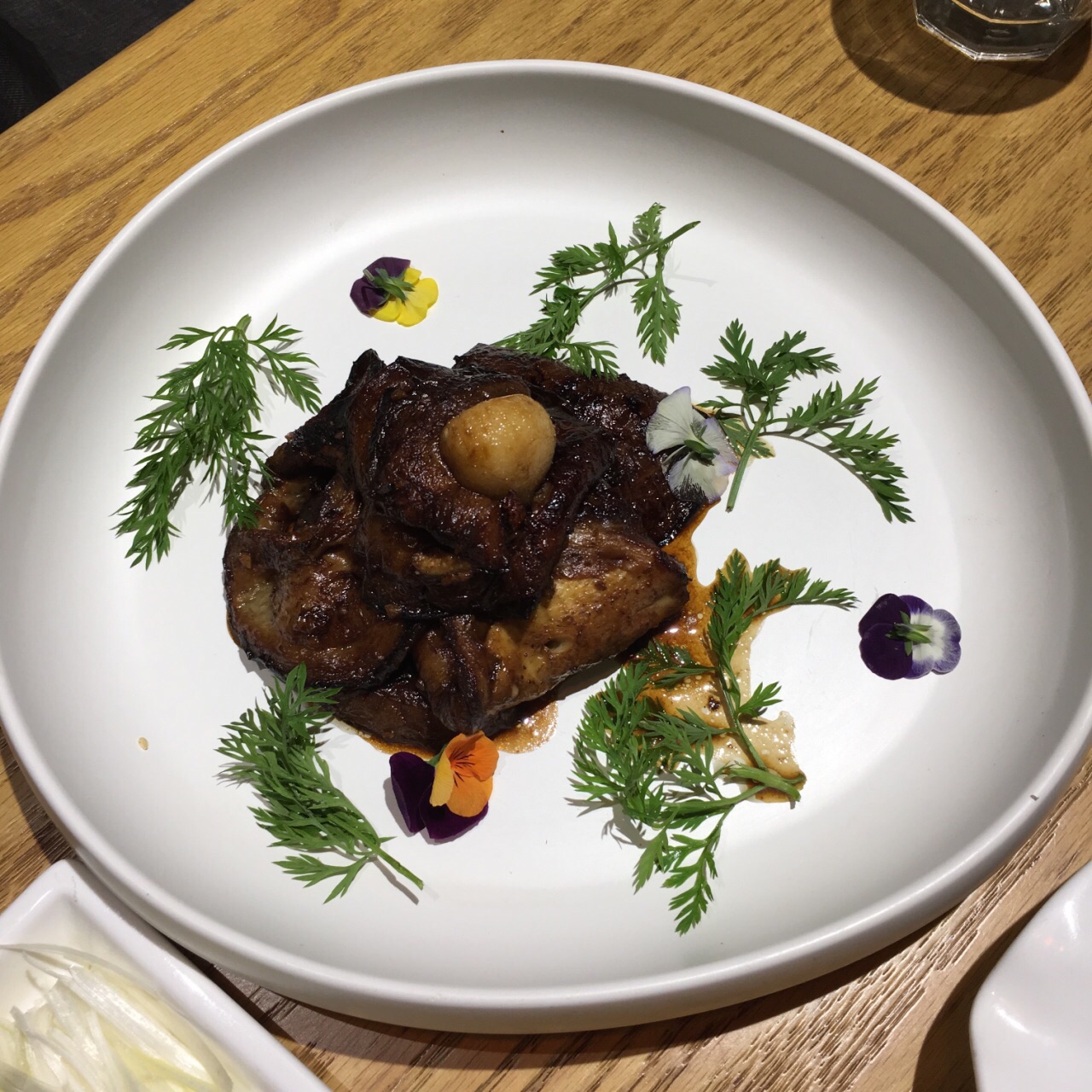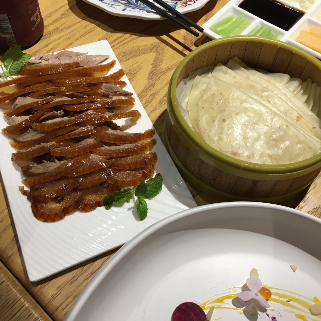 新开的主打天津菜的创意菜餐厅,势头很猛,不过招牌都不是著名的天津菜诶哪的菜都有,还有很多菜想试试,应该还会再带朋友来的。 最喜欢吃南瓜紫薯沙拉,不会太甜,像土豆泥软糯的口感还撒了杏仁碎很香。还有炖牛腩,烧茄子,炒豆角也很不错,牛腩土豆胡萝卜都很入味,茄子豆角是有点咸的很下饭。烤鸭无功无过,倒是鸭架汤非常不错,很浓。摆盘精美,就是盘子太大很不方便。 店名字有创意,环境好服务周到。
