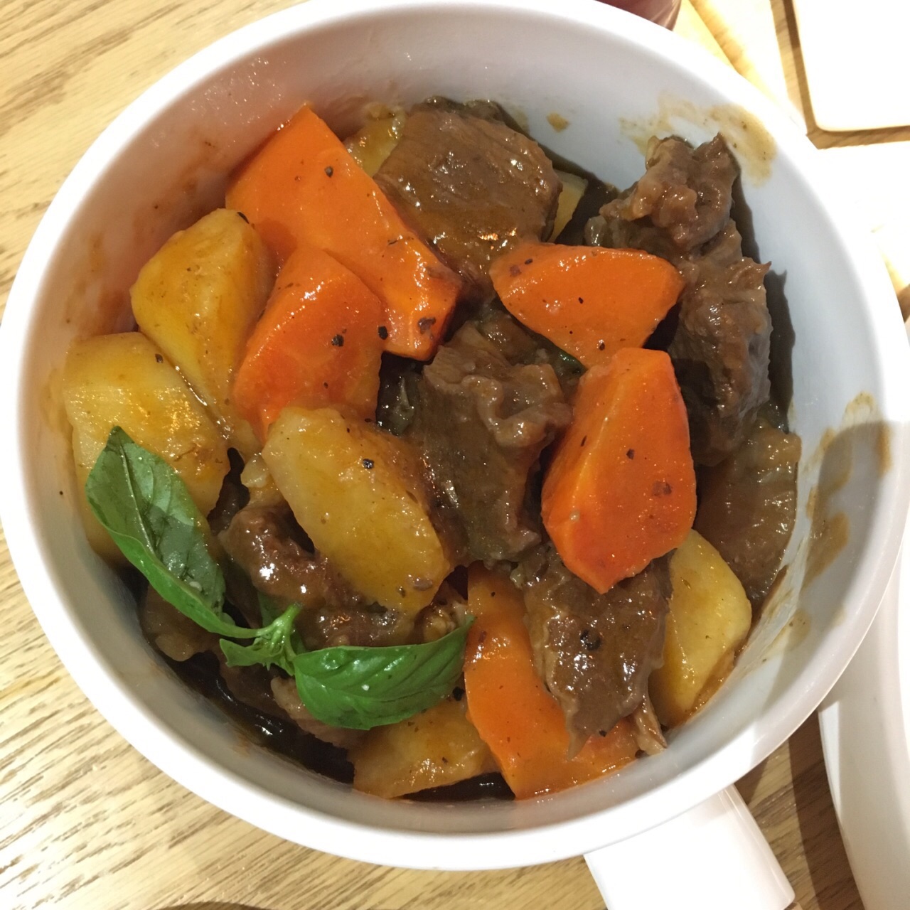 还有炖牛腩,烧茄子,炒豆角也很不错,牛腩土豆胡萝卜都很入味,茄子豆角是有点咸的很下饭