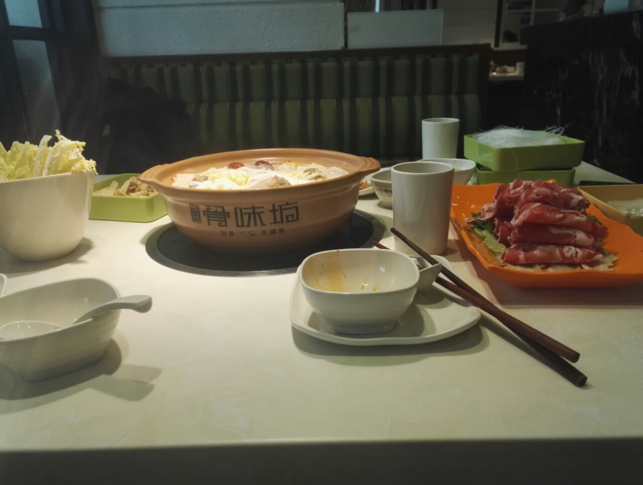 环境还是不错的,服务员态度很好,至于味道嘛,感觉火锅都差不多耶,不过吃完后身上没有浓厚的火锅味,挺好每次往万达骨味坊店过,都能看到很多人在等候,很火爆呀!今天总算有机会吃到,环境还是不错的,服务员态度很好,至于味道嘛,感觉火锅都差不多耶,不过吃完后身上没有浓厚的火锅味,挺好