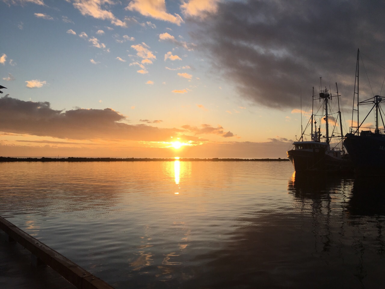 黄昏的渔人码头,美到爆炸!因为是冬天游人稀少,只有一艘渔船上有海鲜卖