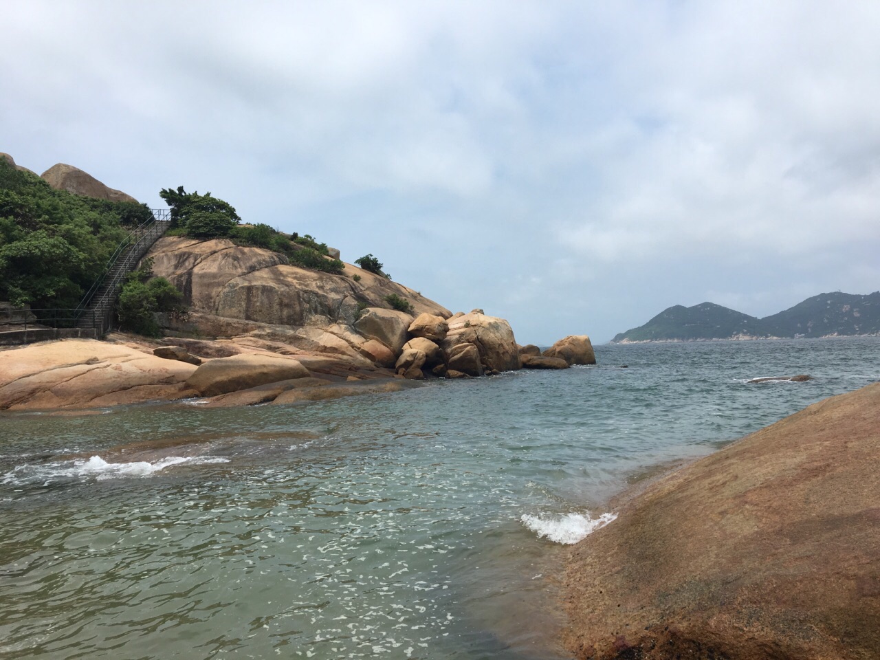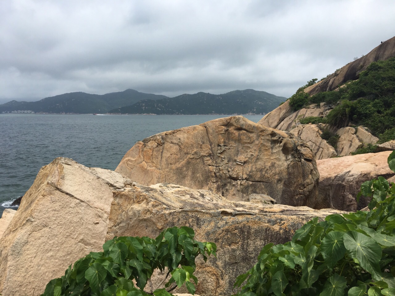 一共是五块数米高的巨石,大的一块坐落在山崖的边缘,有点晃晃悠悠的感觉,好像大风一吹就可能会被吹进海里