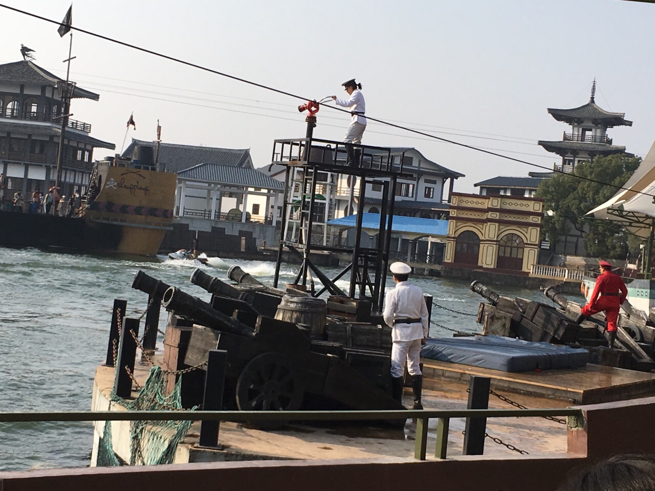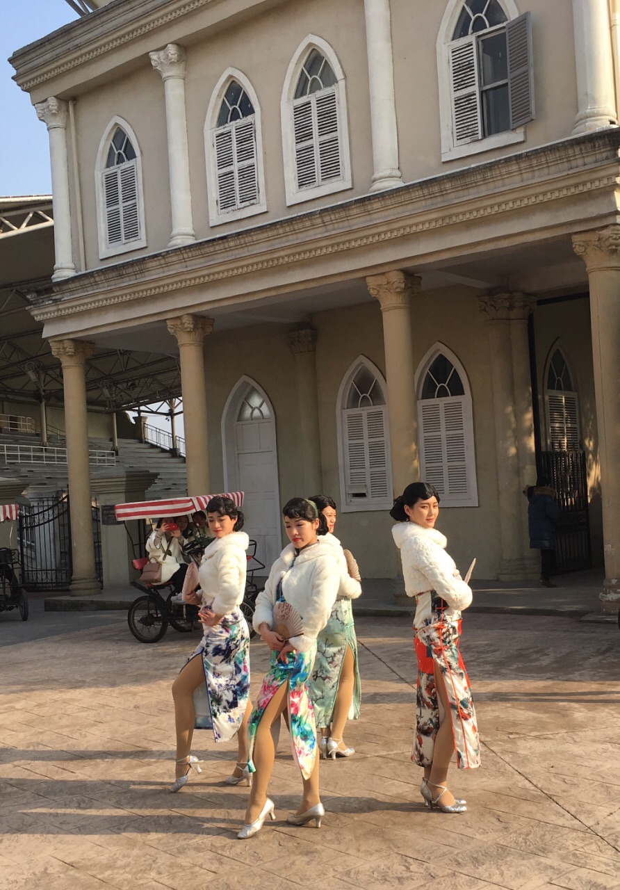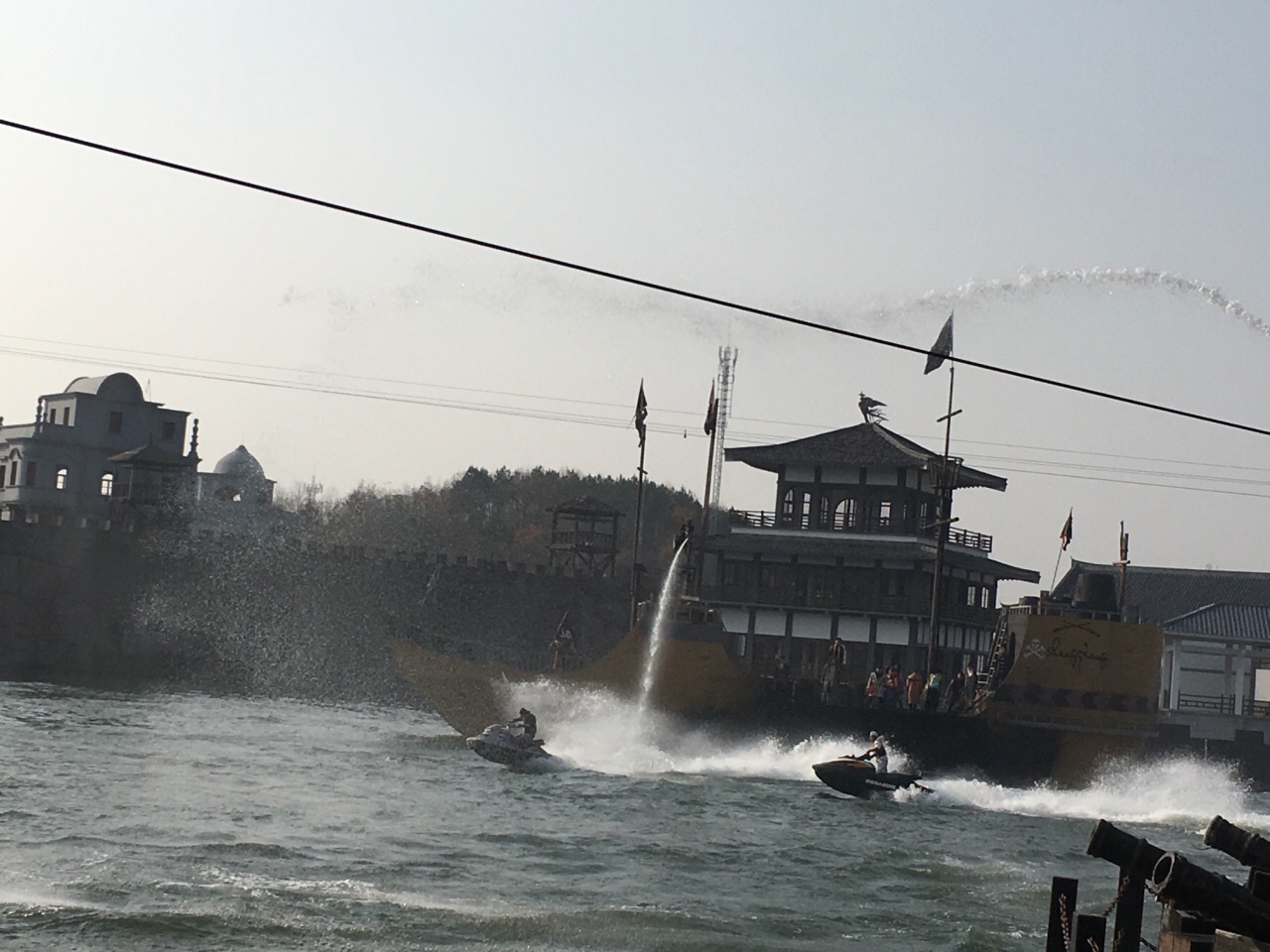 广州街香港街是模店影视城最值得一去的景区,民国时期的电影大多都在这里取景。景区水有实景演出《怒海争风》,《大话飞鸿》,场场爆满。 每天这里都有剧组在拍摄。我们去的时候很幸运,碰到了拍外景的剧组,战地迷情,追击风云,情迷夜聊斋。可以远远的围观。 据景区公告还有其它剧组在拍摄,可能是在室内所以没有找到吧。