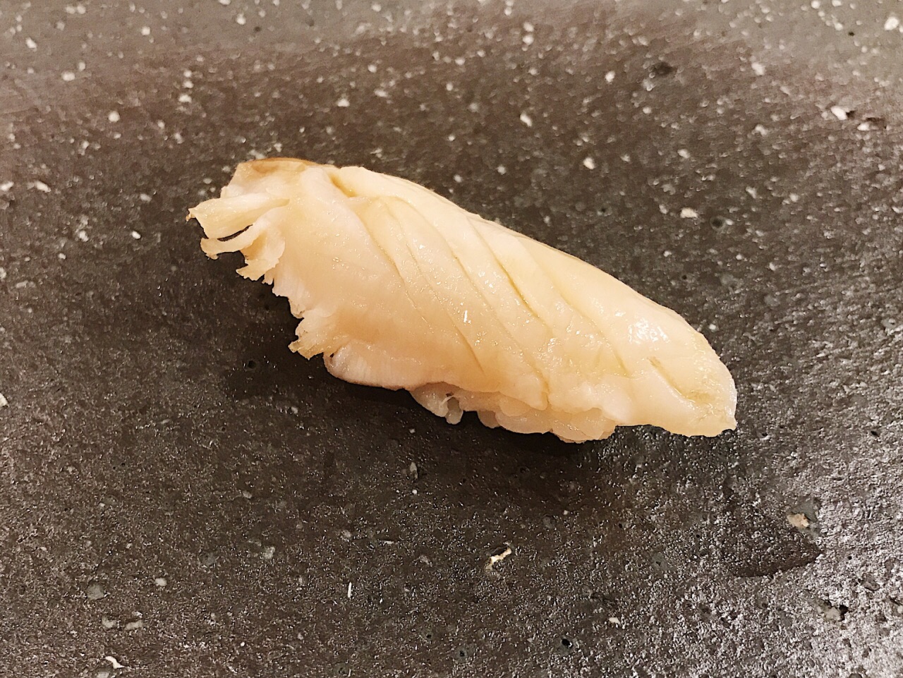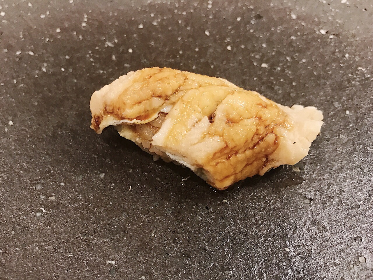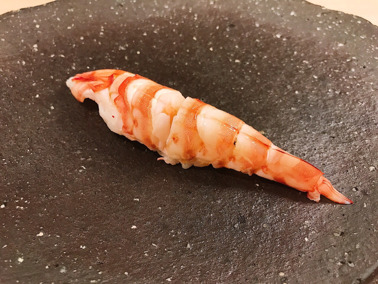 店主松田师傅是地道关西人,老家也是持续了40年的寿司屋。为了学习到地道的江户前寿司技艺,曾在东京几家名店进行修学,所以他的寿司醋饭比起京都风更偏向于江户前寿司的特点。米饭火候恰到好处,可以伴随着食材同步调的咀嚼完全。再推荐一贯有趣的寿司--对虾寿司,外表看似很普通,但是实际上完整的虾肉里面还包裹了一层虾肉的肉糜,所以口中的虾肉味道会更加强烈明显,还同时兼备了两种不同的虾肉口感。