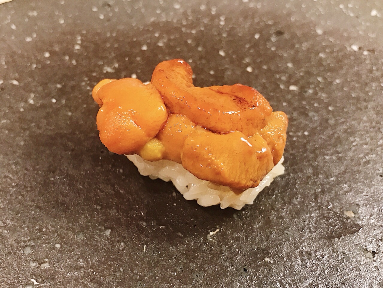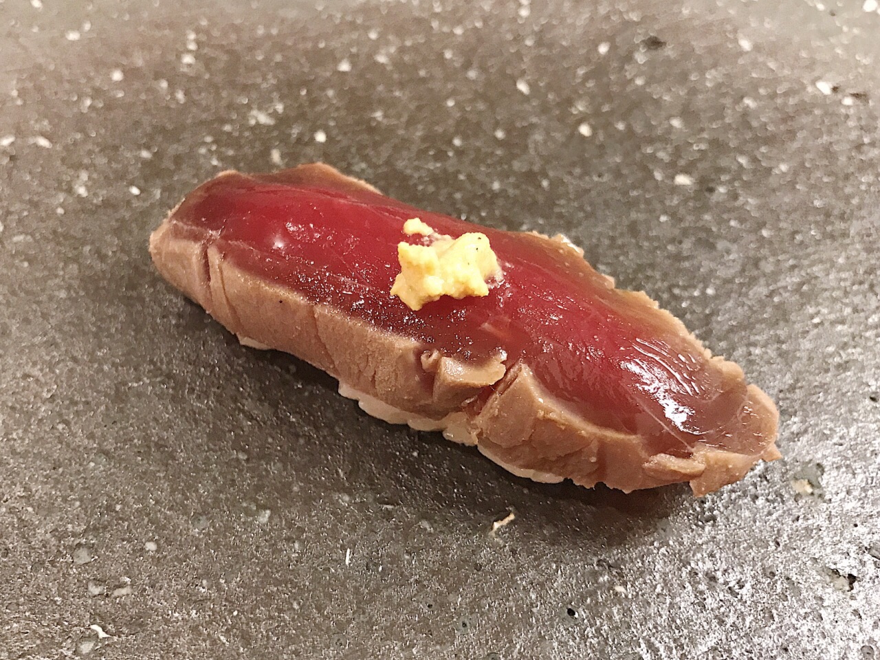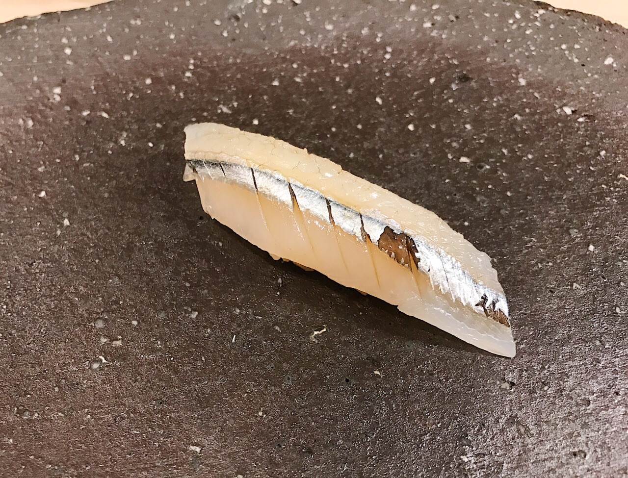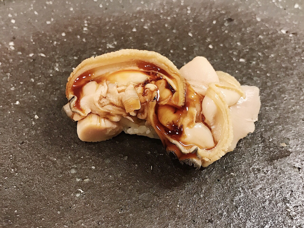 店主松田师傅是地道关西人,老家也是持续了40年的寿司屋。为了学习到地道的江户前寿司技艺,曾在东京几家名店进行修学,所以他的寿司醋饭比起京都风更偏向于江户前寿司的特点。米饭火候恰到好处,可以伴随着食材同步调的咀嚼完全。再推荐一贯有趣的寿司--对虾寿司,外表看似很普通,但是实际上完整的虾肉里面还包裹了一层虾肉的肉糜,所以口中的虾肉味道会更加强烈明显,还同时兼备了两种不同的虾肉口感。