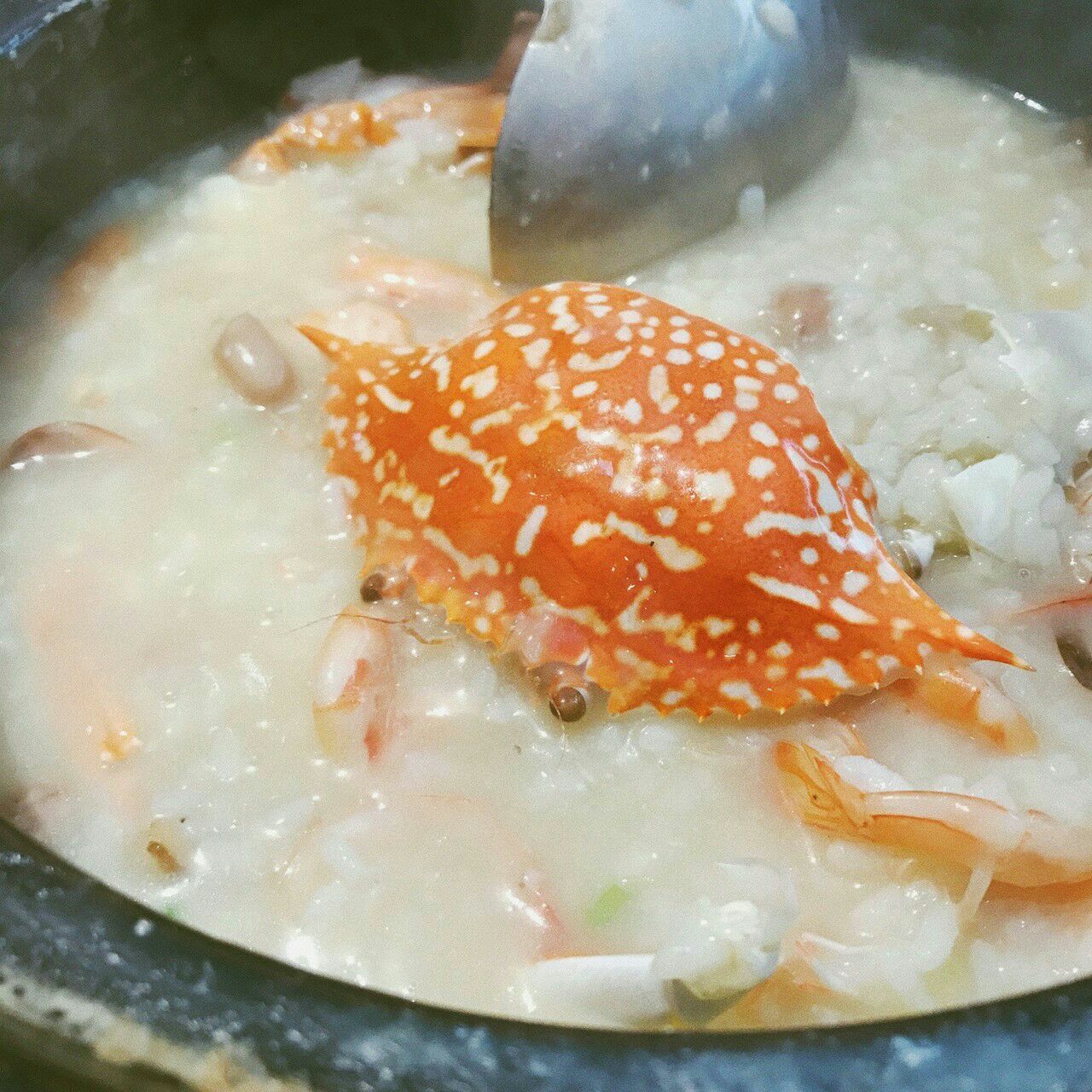分量还挺足的,里面也有整整的一大只螃蟹,够两个人吃,其他的就看别人点的也有菌类的粥也不错,小吃也挺多这家是六合夜市这边很有名的一家。点了一锅海鲜粥,分量还挺足的,里面也有整整的一大只螃蟹,够两个人吃,其他的就看别人点的也有菌类的粥也不错,小吃也挺多。