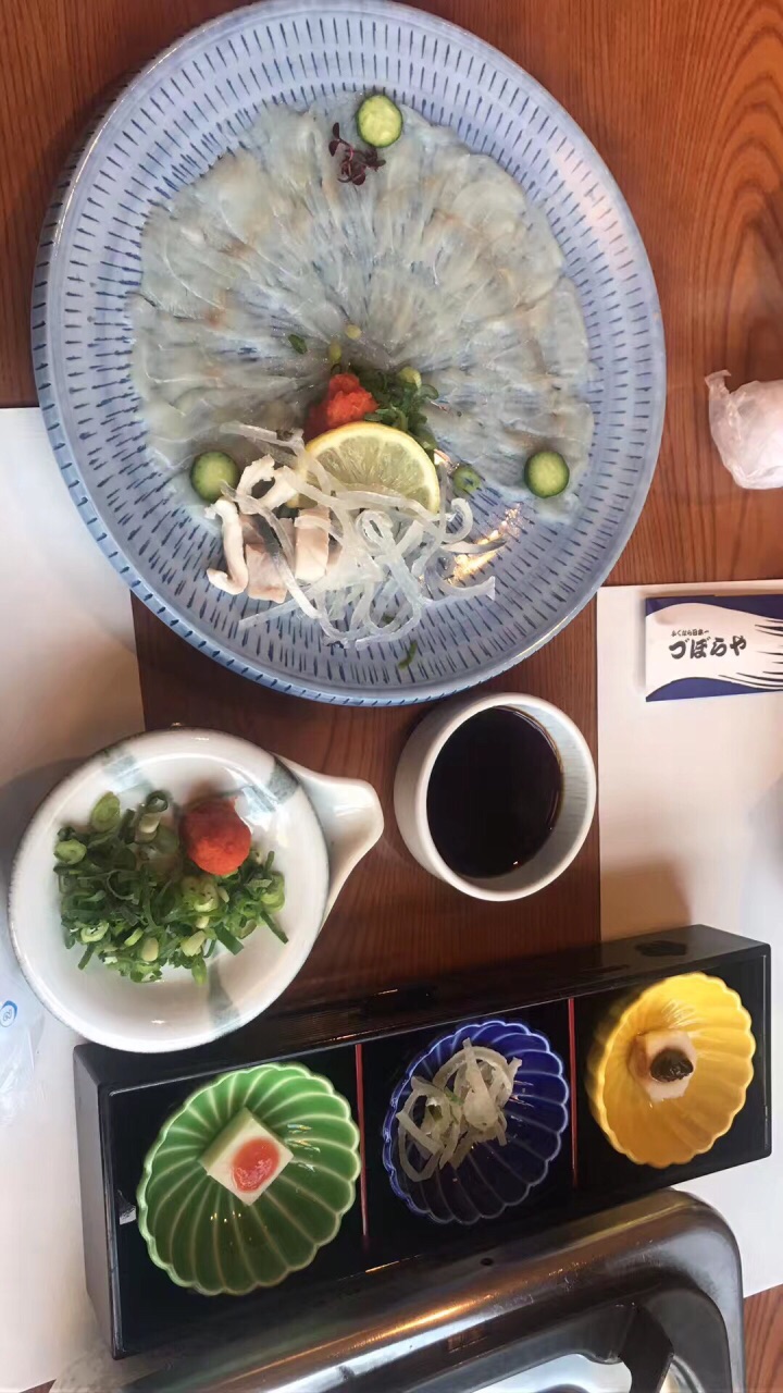 惊艳的野生河豚料理,轻薄的生鱼片,这一套河豚鱼餐,有寿司、火锅、甜点、水果,生鱼片真的非常新鲜好吃!性价比超高。棒棒哒,超级好吃