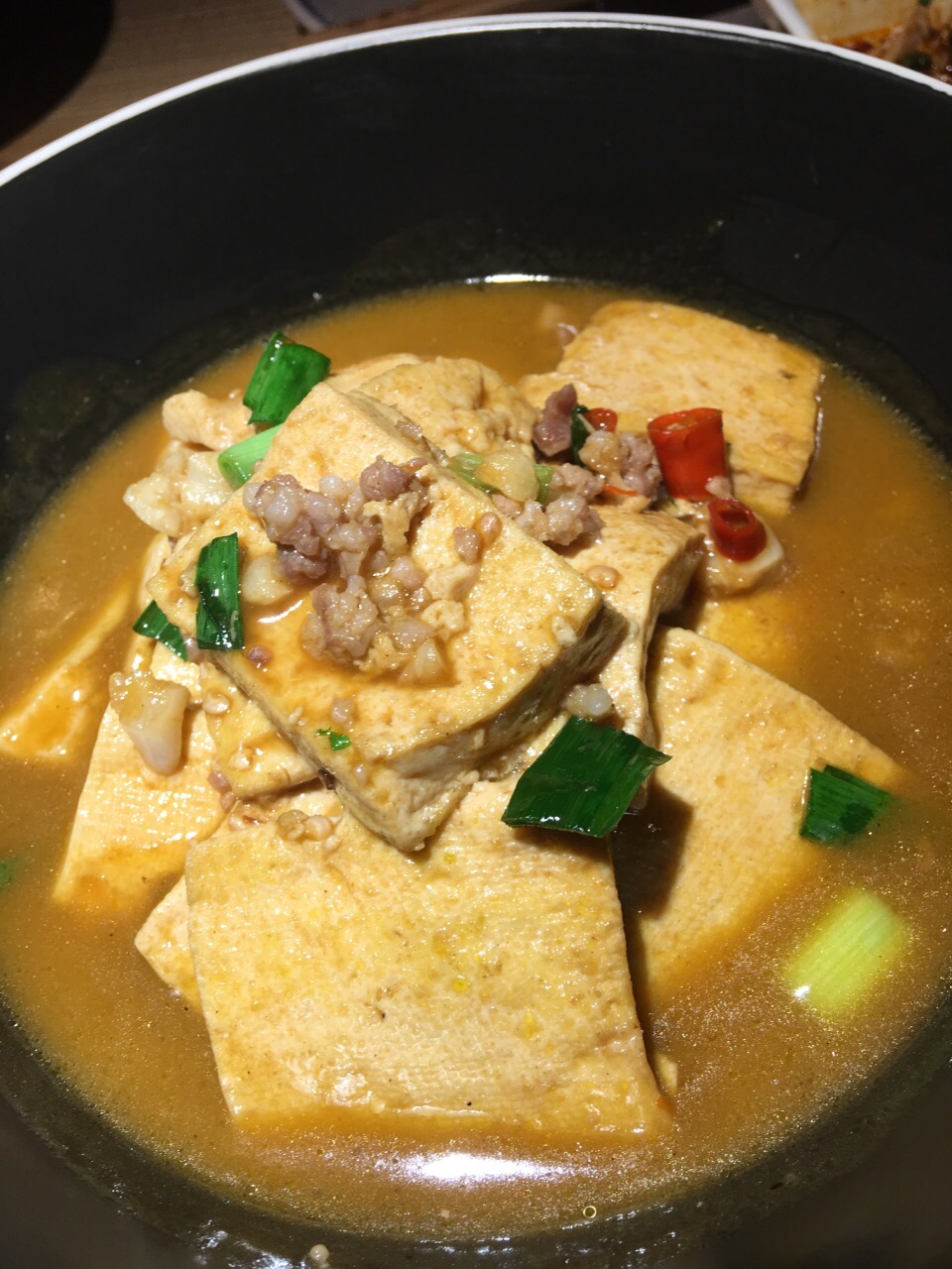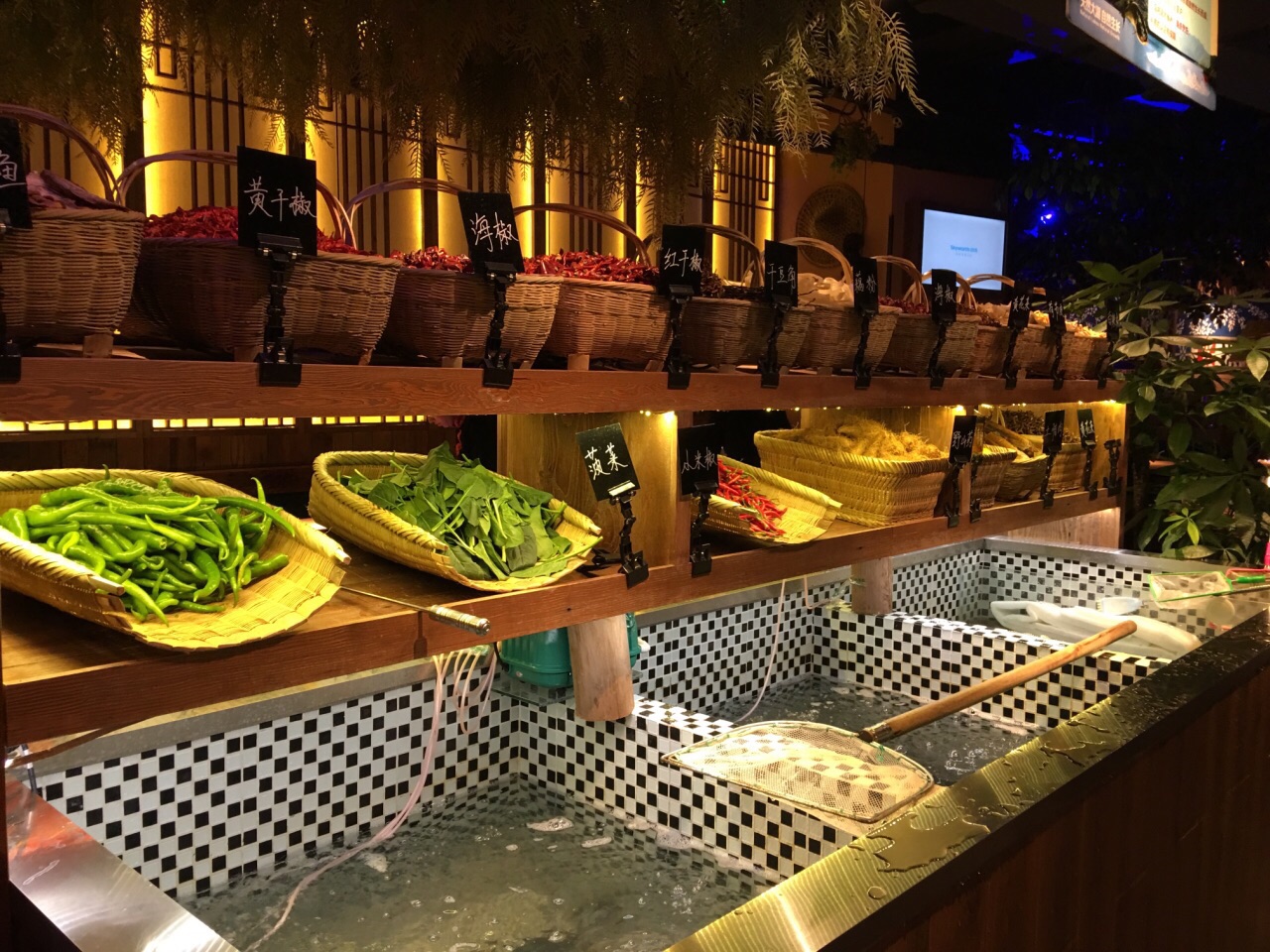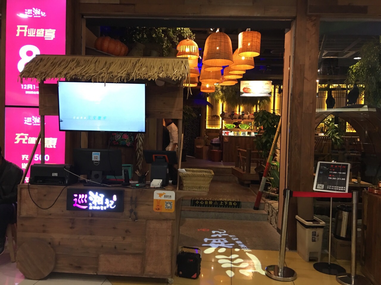 新开业打8折的时候去的。门口有穿少数民族衣服的服务员弹唱,拍两张环境带巡湘记的图片发朋友圈可以免费得到一小瓶辣椒酱。旁边的筐里还有免费的橘子可以吃。环境看上去不错,门口有现做的小饼,去前台扫码付款后可外带。做饼的旁边就是放饮料的地方,比较个性,一些酒水饮料就直接放在碎冰里,一目了然。点菜也比较先进,用一个机器扫码点单。 【火宫殿臭豆腐】很辣,但味道很好。 【黄焖手工白磨豆腐】好像是这个菜名,有点忘记了,里面有肉末,所以味道很鲜,豆腐吃起来很嫩,豆腐味也很重,味道不错。 【铁板蒜茸烤虾】虾整齐的围成一圈,上面铺了一层蒜茸,虾不入味,味道不怎么样。 【豆花】甜品,很好吃,一开始点的时候只剩一杯了,其他现做的还没做好,真悲催,看来销路很好啊。 【口水鸡】凉菜,鸡肉很嫩。 【湖南卤味合拼】有猪耳朵、鸭胗、金钱肚,也是凉菜,味道还好。 【巡湘大湖有机鱼头王】点了¥89的半个鱼头,送面条,这个有点辣,鱼肉一般吧,不过面条放里面味道还蛮好。 【金牌紫苏牛蛙】看上去蛮大一盘,其实底下垫的是金针菇,盘子很浅,辣椒大蒜头偏多,牛蛙的量一般,不是很多,不过味道还可以。